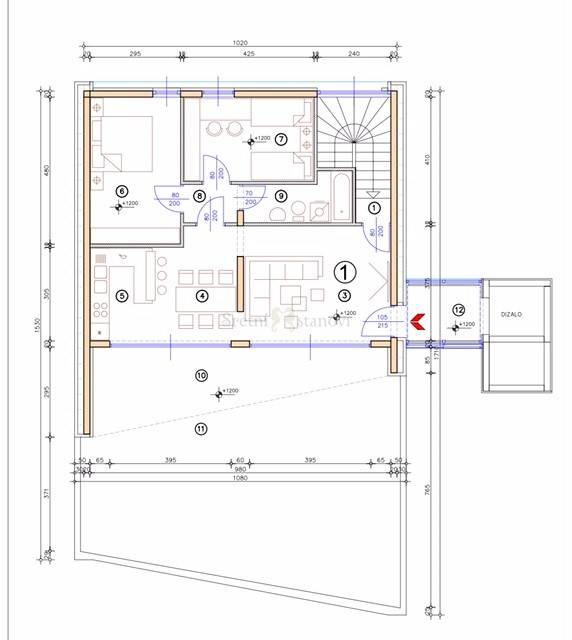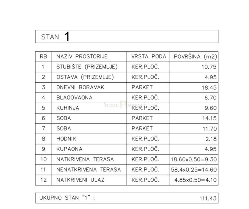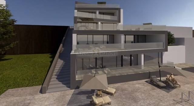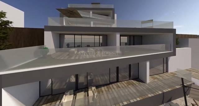 Izvanredan Penthouse na Pećinama, u prekrasnom modernom objektu, s liftom i garažom, prvi red do mora, iznad plaže, s očaravajućim pogledom na Kvarner. Stan br. 1, površine je 111.43 m2, nalazi se na 4. katu, a sa ulazne strane na prvom katu. i južne je orijentacije .Sastoji se od natkrivenog ulaza, hodnika, dnevnog boravka, kuhinje s blagovaonom, dvije spavaće sobe, kupaone, stubišta (površina unutarnjih prostorija 74,48 m2), natkrivene terase 18.60 m2 i nenatkrivene terase 58.4 m2, te ostave 4.95 m2. Stan ima dva garažna parkirna mjesta. Grijanje je podno, dizalica topline, sistem daljinskog upravjanja SH. Odlična lokacija, šetnja do centrra oko 10 minuta, blizina sadržaja i plaža. Kupac ne plaća porez na promet nekretnina.