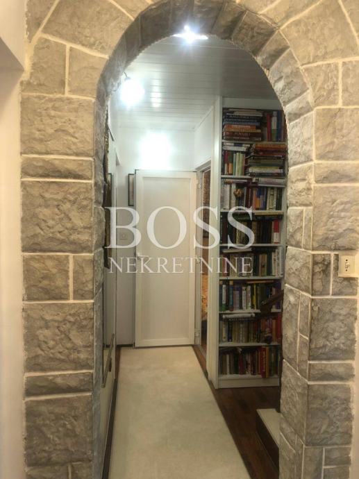 Pećine, dvoetažni stan površine 102m2 na odličnoj lokaciji, 1. red do mora. 4S+DB, uređen. Stanu pripada dvorište i ljetna kuhinja. Cijena stana s garažom je 490.000 eur/kn. Rijetkost na tržištu! Boss, kontakt: 091/377-1010