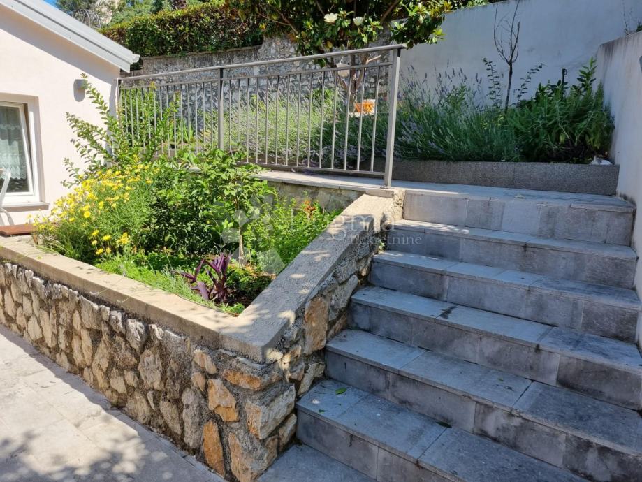 Sastoji se od 2 spavaće sobe, kupaonice, dnevnog boravka, kuhinje sa blagovaonicom, dvorišta sa pogledom na more. Poseban ulaz u zgradi sa tri stana.