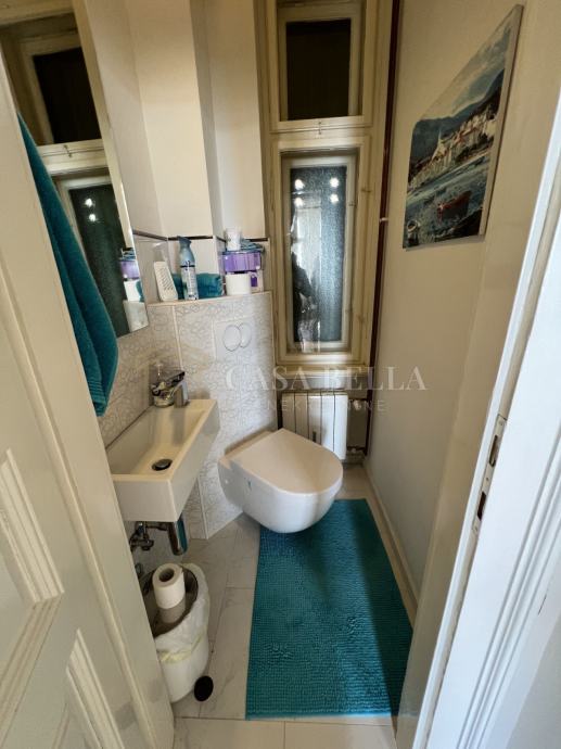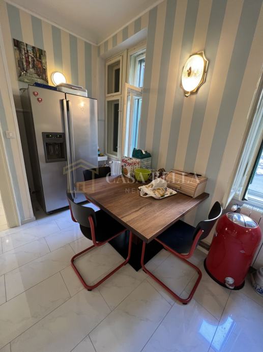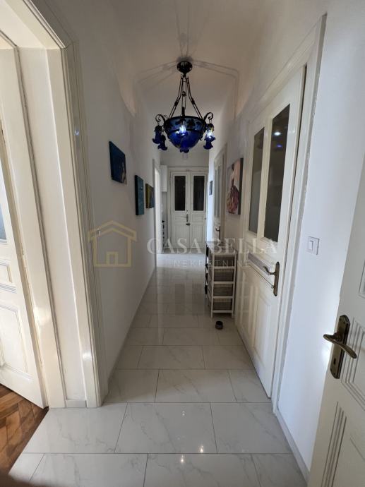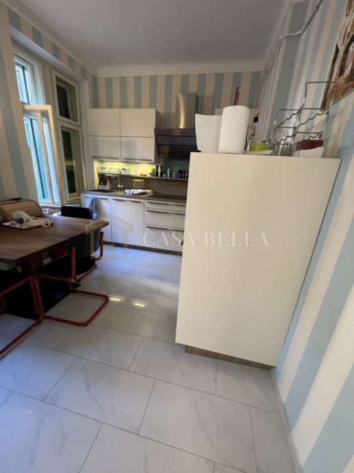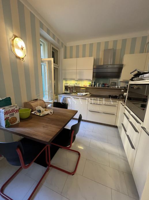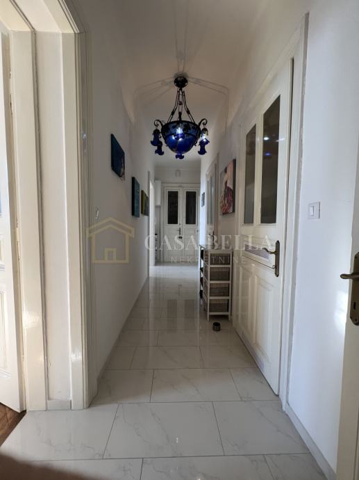 Casa Bella vam iz ponude izdvaja jedinstvenu nekretninu na Pećinama. Nekretnina se nalazi na ekskluzivnoj lokaciji smještenoj u staroj villi, prvi red do mora. Stan površine 111m2 osim toga sadrži i skladišni prostor od 25 m² u suterenu, te podrum/ostava od 9 m². Stan se sastoji od kuhinje sa blagovaonicom, kupaonica, ostava, WC, hodnik, dnevni boravak, soba za goste i spavaća soba. Iz dnevnog boravka izlazi se na balkon iz kojeg se pruža fantastičan pogled na more i cijeli kvarner. Stan je kompletno renoviran 2016. godine, promijenjene su sve instalacije i napravljeni novi podovi, a također ima i video nazor i optički internet. Stan ima jako skupu opremu, Vailant plinski bojler, Gaggenau pećnica, Siemens štednjak kombinirano plin-elektro, te jako skupi lusteri. Nekretnina vrijedna pažnje! Cijena na upit.