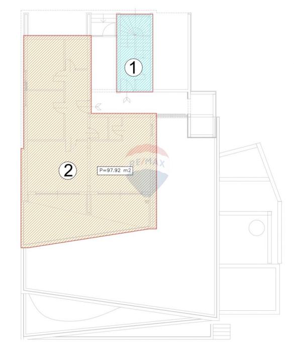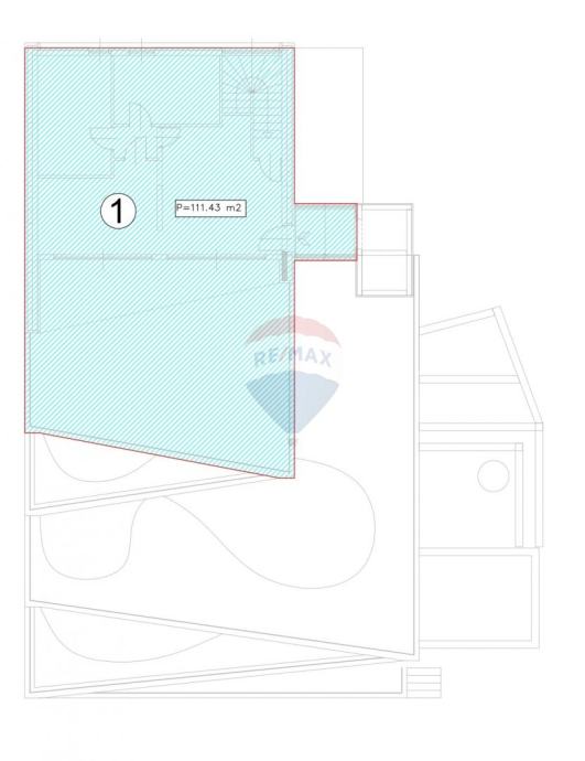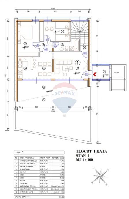PENTHOUSE - STAN S1, 2S+DB – ukupne neto površine 111.43 m2 - nalazi se na prvom katu stambene zgrade.