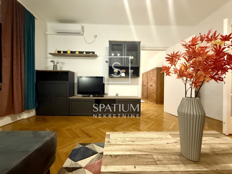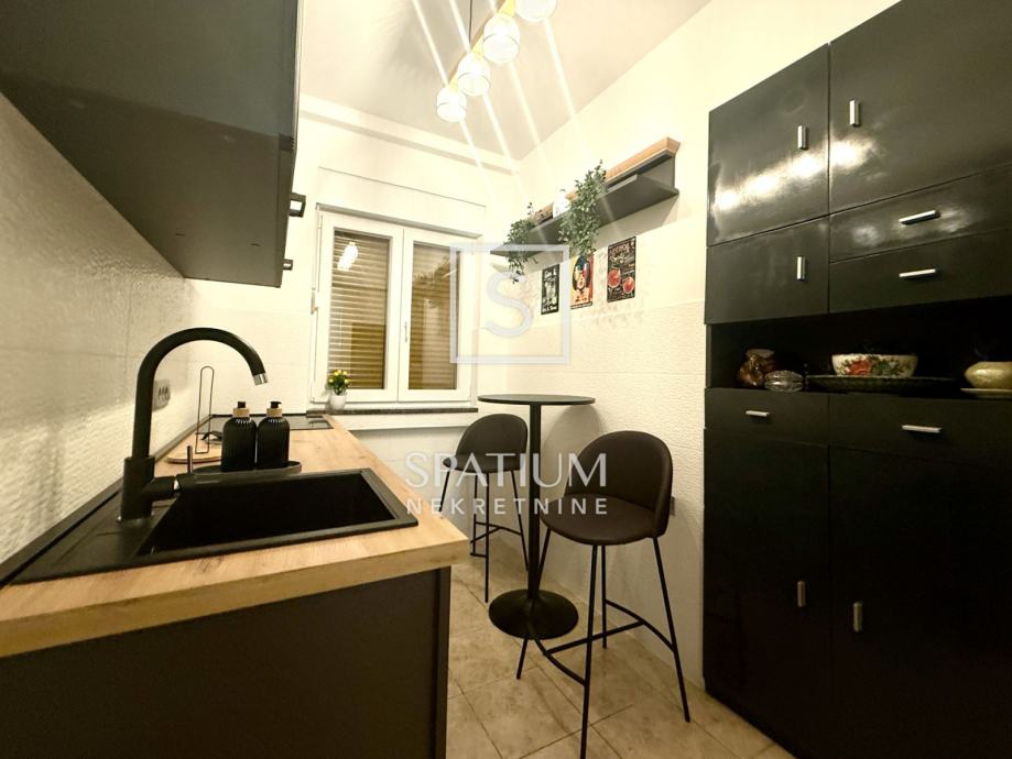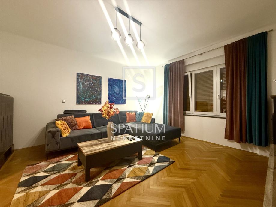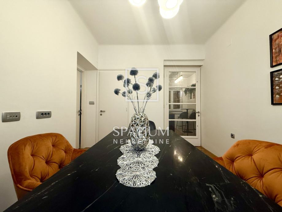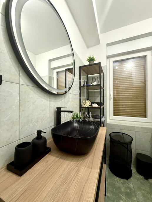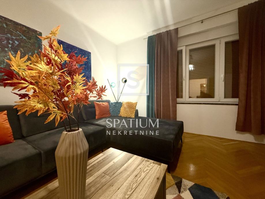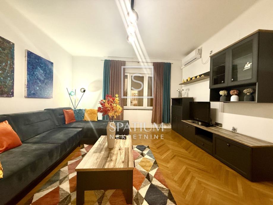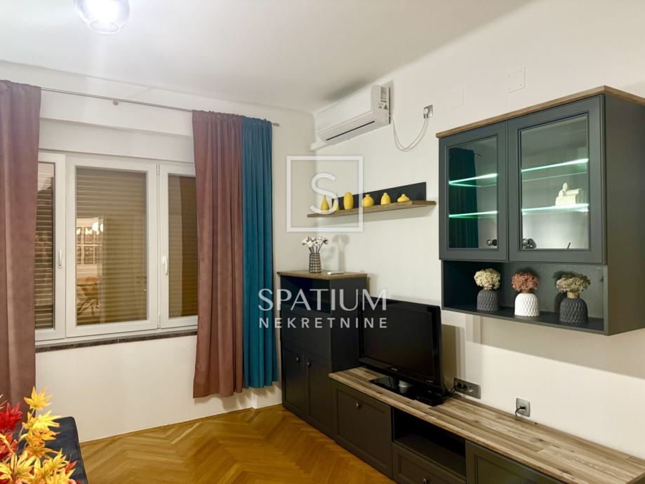 Pažljivo je uređen modernističkim stilom, opremljen svim potrebnim aparatima te spreman za ugodan i funkcionalan život. Južna orijentacija pruža obilje prirodnog svjetla i prekrasan pogled na more, dok je grijanje i hlađenje omogućeno putem novih klima uređaja. Blizina svih sadržaja, uključujući trgovine, škole i javni prijevoz te samo nekoliko minuta hoda do centra grada čine ovu nekretninu idealnim izborom za one koji žele spojiti praktičnost i luksuz svakodnevnog života. Ulica u kojoj se stan nalazi ima uvijek dostupan parking što dodatno doprinosi praktičnosti.