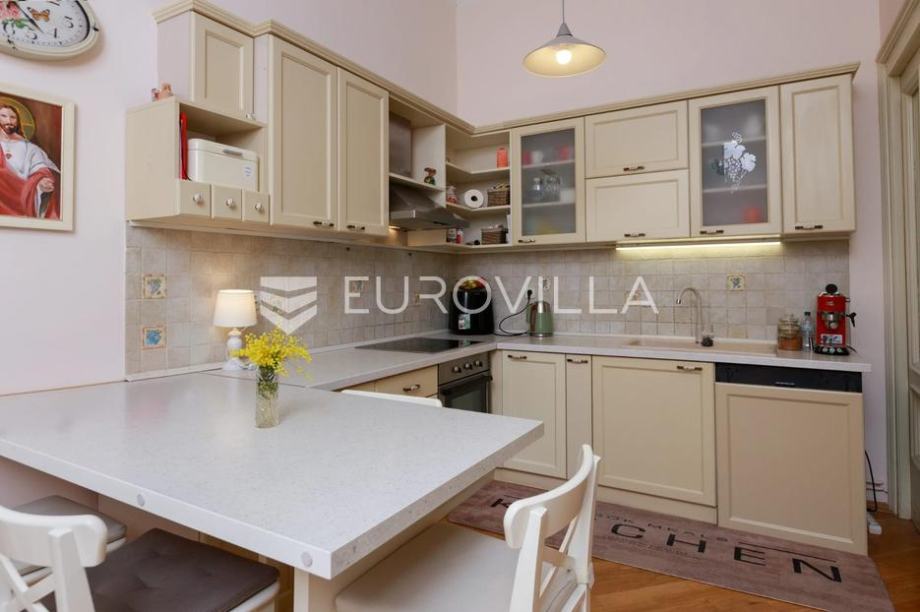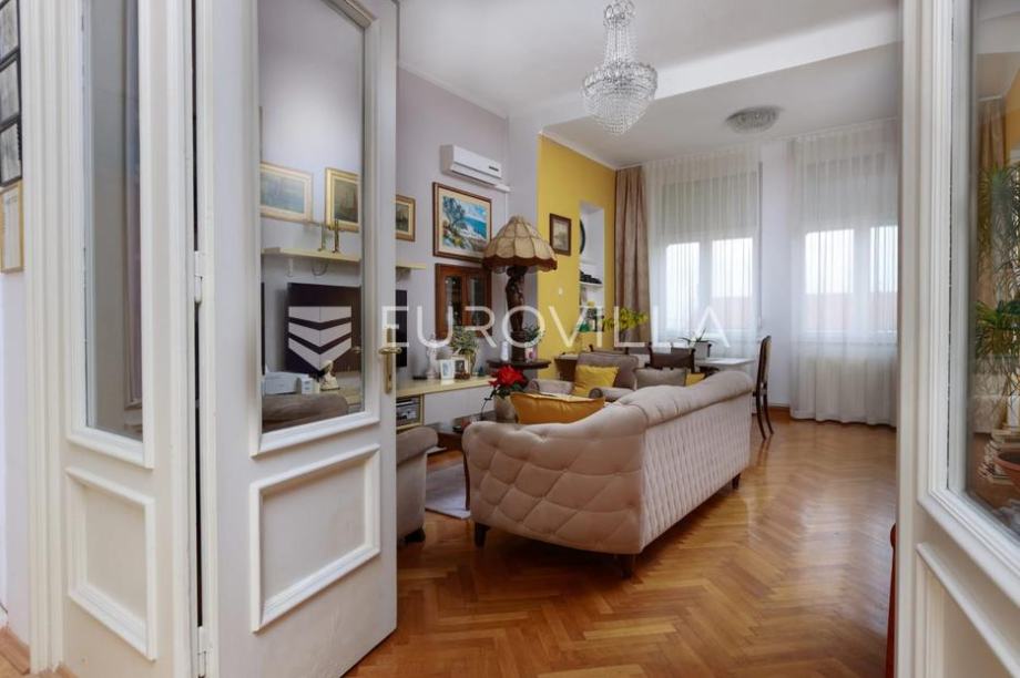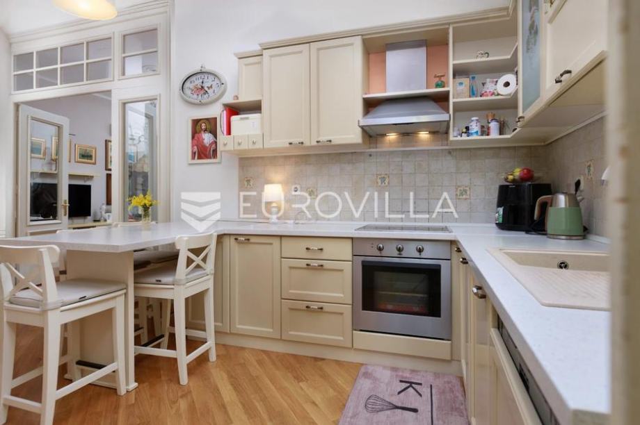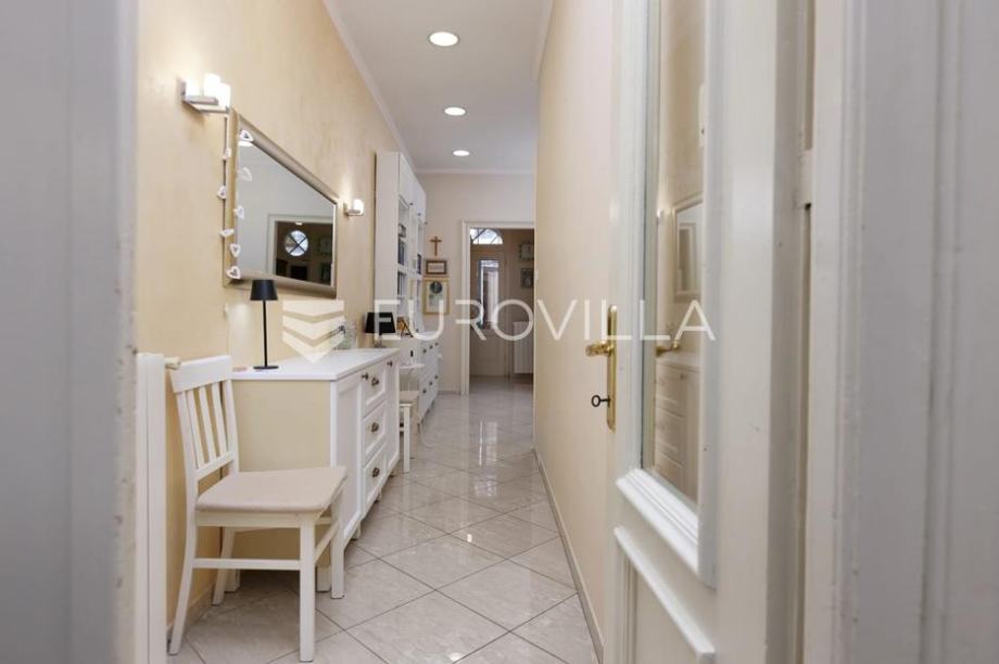 U predivnoj vili smještenoj u drugom redu do mora nalazi se šarmantan stan od 107,22 m2 koji nudi rijedak spoj povijesnog karaktera i funkcionalnog dizajna. Zahvaljujući iznimno visokim plafonima i velikim prozorima koji propuštaju obilje prirodne svjetlosti, unutrašnjost odiše prostranošću i otmjenošću koja nadilazi samu kvadraturu.Stan je pažljivo osmišljen kako bi pružio maksimalnu udobnost, a sastoji se od predsoblja, hodnika, kuhinje s blagovaonicom i dnevnim boravkom, dvije spavaće sobe, garderobe, kupaonice s WC-om te dodatnog zasebnog WC-a.Posebnu vrijednost nekretnini daje prostrana terasa koja služi kao savršen vanjski dnevni boravak, dok pravo korištenja uređene okućnice površine 150 m² pruža privatni kutak za opuštanje u zelenilu. Lokacija je doista izuzetna – more i uređene plaže nalaze se u neposrednoj blizini, dok je živahni centar grada i Korzo udaljen svega deset minuta laganog hoda.Bilo da tražite nekretninu za život, odmor ili sigurnu investiciju za turistički najam, ovaj stan predstavlja jedinstvenu priliku na tržištu.Za ododatne informacije slobodno nas kontaktirajte....