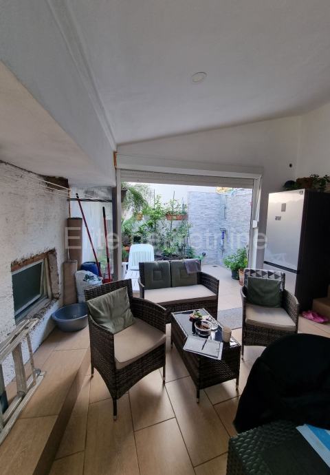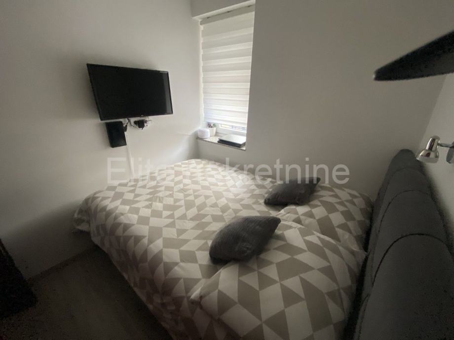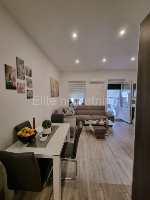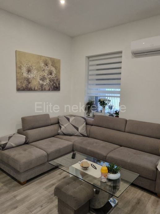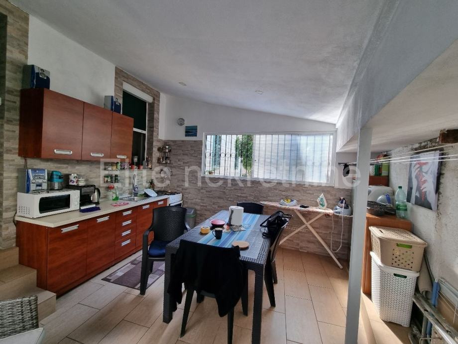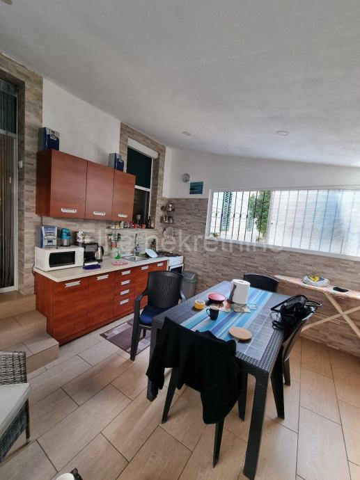 Stan u prizemlju površine 45m2. Sastoji se od dvije spavaće sobe, dnevnog boravka, dvije kuhinje jedna u stanu a druga u natkrivenoj terasi, kupaonice, prekrasne terase i drvarnice.