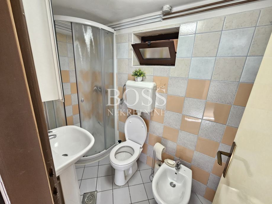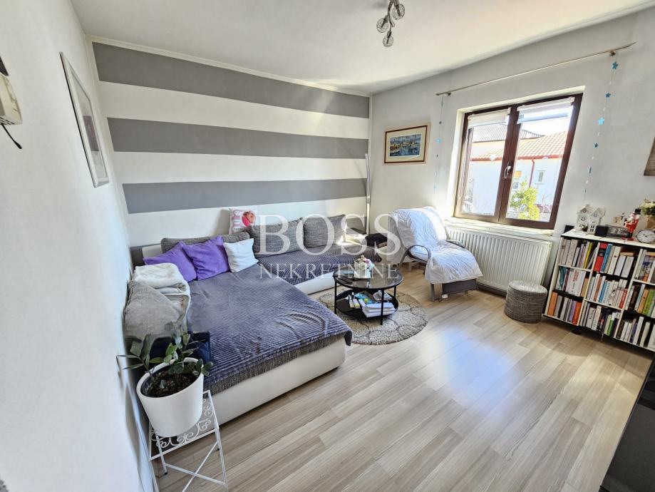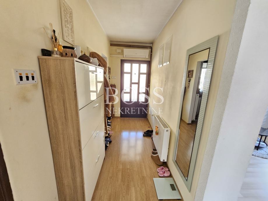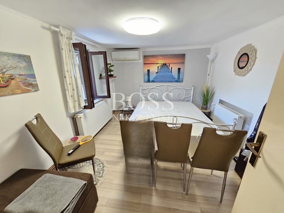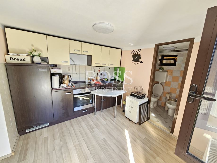 Pehlin, u ponudi imamo etažu na prvom katu i 1SKL stan u prizemlju s okućnicom i dva parkirna mjesta. 1SKL stan u prizemlju ima 23m2 i sastoji se od kuhinje s blagovaonom, sobe, kupaone, te pripadajuće okućnice od 60m2. Stan na prvom katu, površine 60m2 ima zaseban ulaz, a sastoji se od velike ulazne terase 20m2 i nenatkrivene terase 50m2, te kuhinje s blagovaonom, hodnika, dnevnog boravka, kupaone, dvije sobe, a pripada mu tavan iznad cijelog stana. Prodaje se sve zajedno i kompletno namješteno (osim TV-a u većem stanu). Stanovi su etažirani, uredna vlasnička dokumentacija. Mogućnost najma manjeg stana. Boss, kontakt: 091/379-1010 Dragan