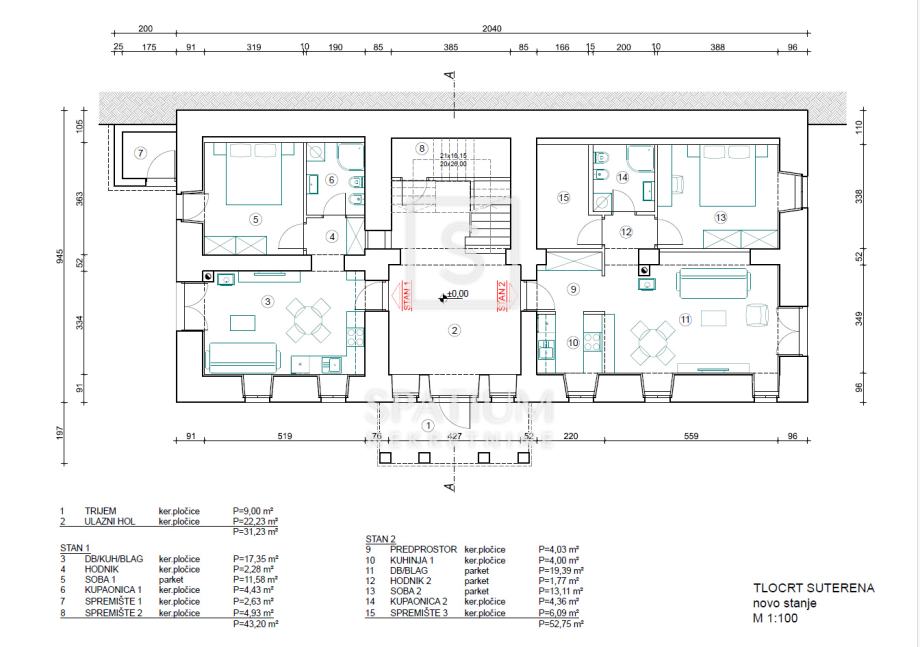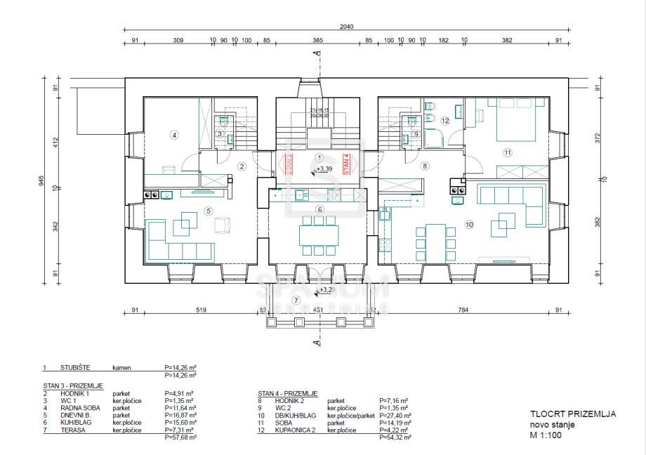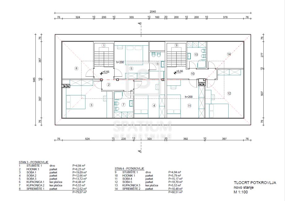 PEHLIN, u ponudi je projekt u izgradnji sa četiri stana. U prizemlju su, po projektu, predviđena dva stana konfiguracije 1S+DB, kvadrature 43,20 m2 i 52,70 m2. Oba stana sastoje se od ulaza, kuhinje s blagovaonicom i dnevnim boravkom u open-space stilu, kupaonice, spavaće sobe te spremišta. Na prvom katu i visokom potkrovlju nalaze se dva dvoetažna stana, jedan stan je ukupne kvadrature 136,55 m2. Sastoje se od ulaznog hodnika, kuhinje s blagovaonicom, toaleta, radne sobe i terase na prvoj etaži te hodnika, tri spavaće sobe, dvije kupaonice i spremišta u visokom potkrovlju. Drugi stan ukupne je kvadrature 114,83 m2, a sastoji se od hodnika, toaleta, dnevnog boravka s kuhinjom i blagovaonicom povezanih u open-space stilu, spavaće sobe i kupaonice na prvoj etaži te hodnika, dvije spavaće sobe, kupaonice i spremišta u visokom potkrovlju. Predviđeno je da će dva manja stana imati po jedno parkirno mjesto, dok će stanovi na katu imati po dva parkirna mjesta u vlasništvu.