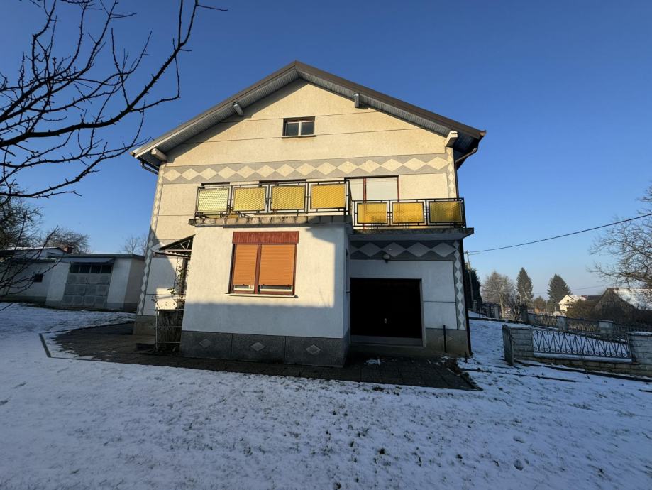Prodaje se obiteljska kuća u Peklenici. Kuća se sastoji od PRIZEMLJE - ulazni hodnik, hodnik, kuhinja, dvije spavaće sobe, dnevna soba i špajza. KAT: 3 spavaće sobe, kuhinja+blagovaona, kupaona+WC. Ispod kuće je djelomično podrum. Na kući je renoviran krov. Nalazi se na mirnoj i tihoj lokaciji, grijanje je kombinirano centralno na plin + drva. U dvorištu se nalazi još pomoćni objekat veličine 300m² koji je namijenjen za automehaničarsku radionu (sastoji se od dvije veće prostorije, jedne prostorije za druženje i kancelarije + WC), kao i manji objekat koji je nekad služio za stanovanje + garaža. U produžetku dvorišta nalazi se oranica 3869m².