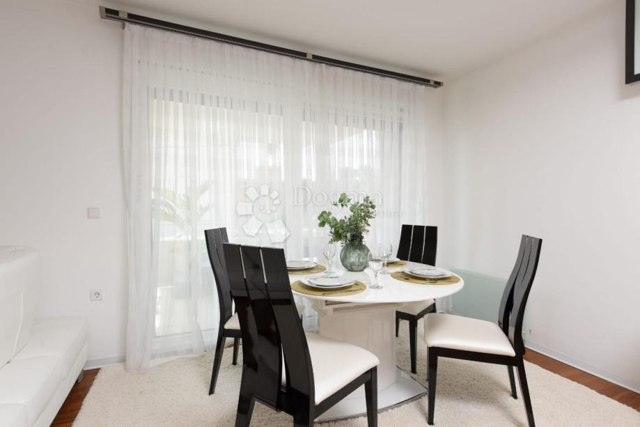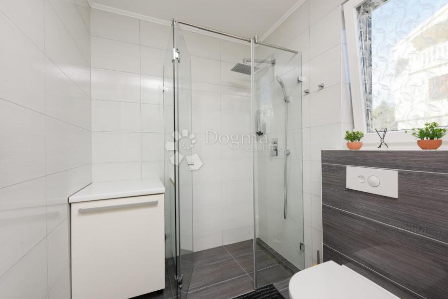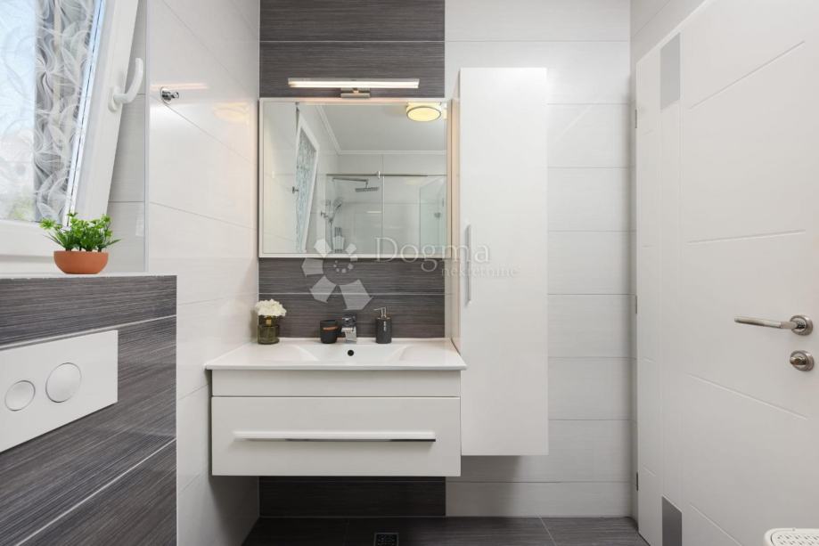 S 131 četvornim metrom stambenog prostora, stan je osmišljen za udoban i funkcionalan život. Dvije prostrane spavaće sobe, dvije moderne kupaonice i veliki dnevni boravak koji objedinjuje blagovaonicu i kuhinju čine prostor svijetlim i preglednim. No, ono što ovaj stan čini posebnim jest izlaz na veliku terasu s jacuzzijem – mjesto gdje će jutarnja kava dobiti novu dimenziju, a večernje opuštanje pod zvjezdanim nebom postati ritual.