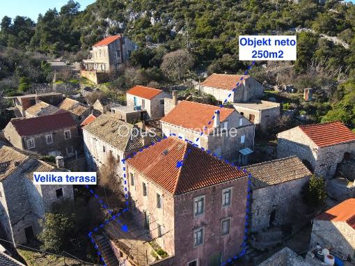 Prodaje se kamena kuća 250m2 neto s terasom za renovaciju u mjestu Janjina na poluotoku Pelješcu. Kuća se sastoji od konobe, prizemlja, kata i visokog potkrovlja. Ispred kuće je prostrana terasa ispod koje je moguće napraviti garažu za 2 automobila. Izvrsna prilika za izgradnju apartmana i jednu veliku turističku priču.