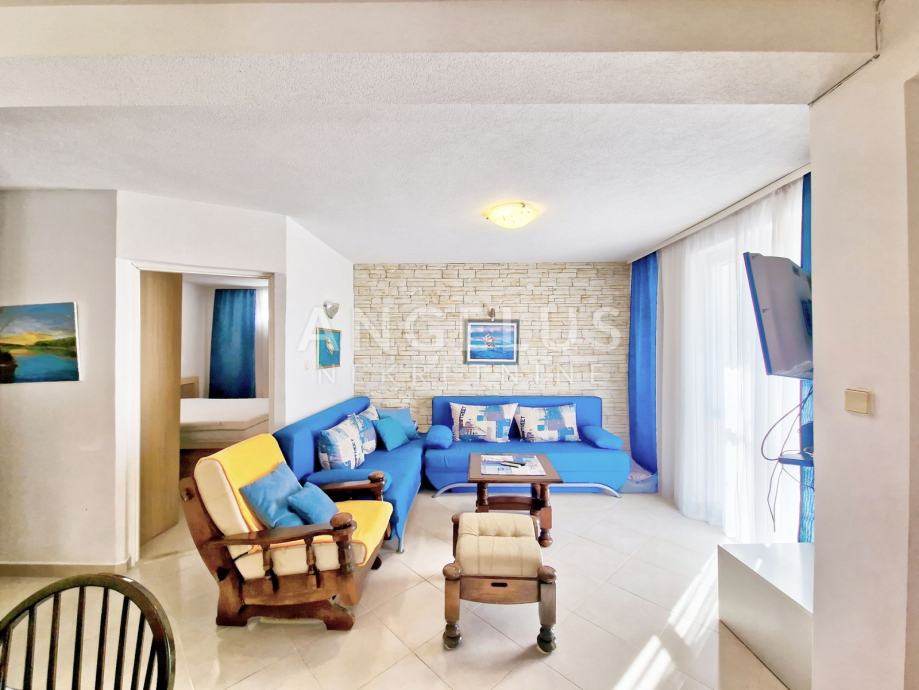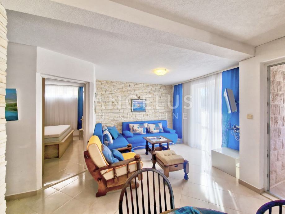 Stan je potpuno namješten i opremljen, s novim madracima i modernim uređajima, a pažljivo odabrani detalji poput ukrasnih zidova i praktičnih rješenja u dnevnom prostoru stvaraju ugodnu i toplu atmosferu. S obzirom na veličinu i raspored, ova nekretnina idealna je kako za obiteljski život, tako i za turističko iznajmljivanje.