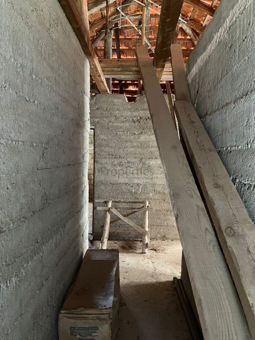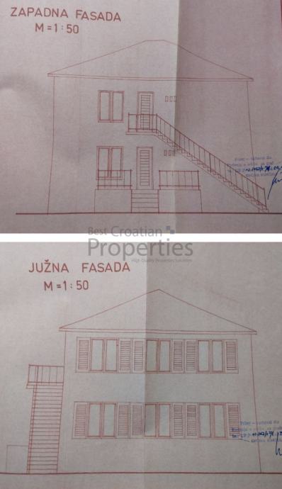 Kuća ukupno ima cca 265m2 stambene površine i sastoji se od prizemlja i prvog kata. Prizemlje ima ulaz sa zapadne strane dok je ulaz na prvi kat omogućen sa vanjske strane armirano betonskim stubištem. Mogućnost odvajanja dva zasebna stana sa zasebnim ulazima.