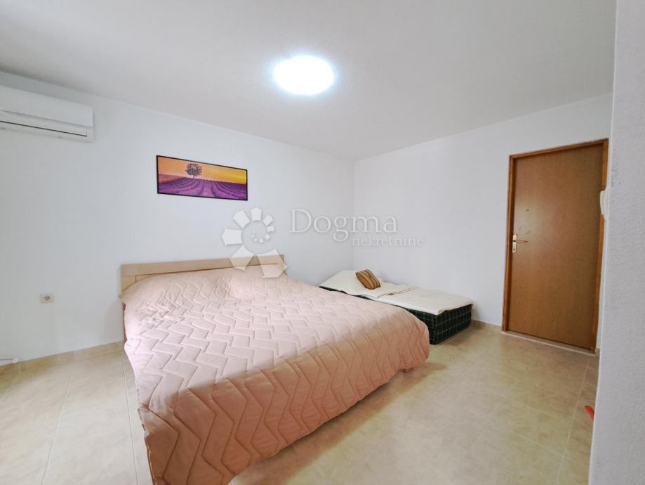 Kroz dvorište s natkrivenim dijelom, stižete do prizemne kuće koja nudi ugodan prostor za druženje kroz veliki dnevni boravak s blagovaonicom i kupaonicom. Izlazak na ograđeno dvorište dočekuje Vas s malom pomoćnom kućicom koja trenutno služi kao kuhinja.
