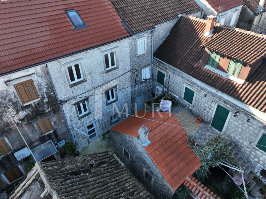 Glavna kuća ima neto stambenu površinu od 220 m² te se proteže kroz više etaža. Prostor je organiziran u ukupno šest soba, što omogućuje funkcionalno korištenje za veću obitelj ili prenamjenu u više smještajnih jedinica. Kamena gradnja i izvorni arhitektonski elementi daju nekretnini autentičan dalmatinski karakter.