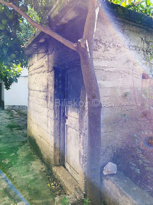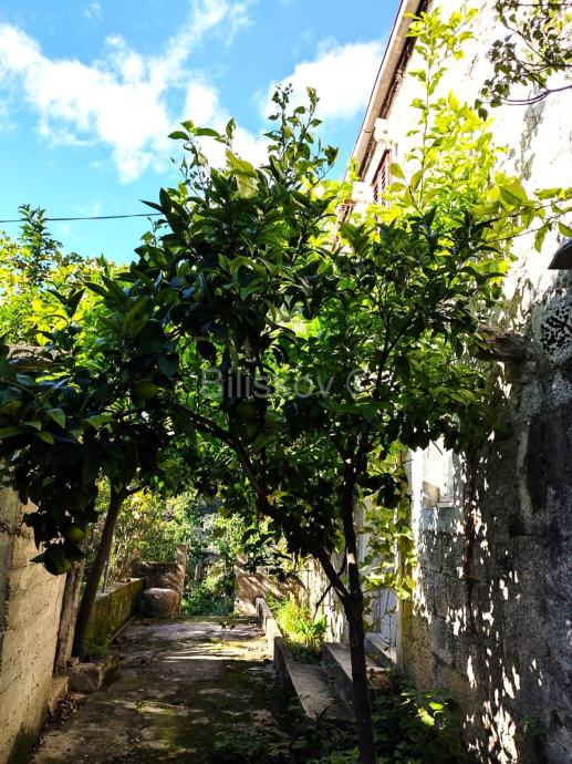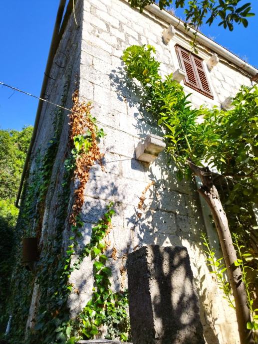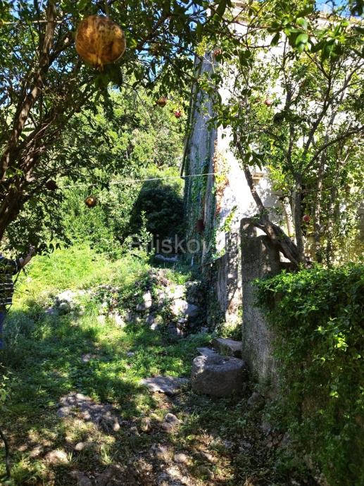 Pelješac, Viganj, dvojna kamena kuća na dvije etaže tlocrtne površine 58m2, nasuprot koje su dvije ruševine površina 61m2 i 36m2, šuma površine 58m2 i prolaz od 11m2.