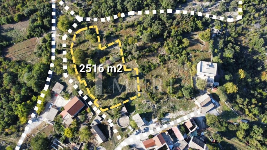 Zemljište je veličine 2516m2 pravilnog oblika te je okruženo netaknutom prirodom i pogledom na Pelješac.
