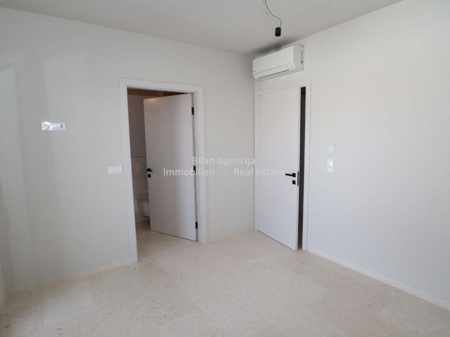 Podovi u stanu su obloženi prirodnim kamenom, ugrađeno je podno grijanje, alu balkonska vrata i prozori sa elektro roletama i zaštitom od insekata, inverter klima uređaji se nalaze u svim spavaćim sobama i kuhinji, blagovaoni i dnevnom boravku, kvalitetna oprema kupaonica. Luksuzno.