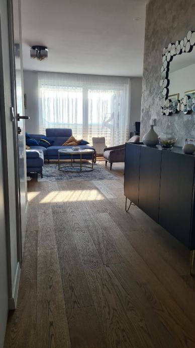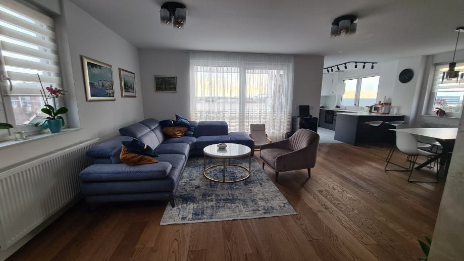 Prodaje se moderno namješten četverosoban stan na četvrtom katu stambene zgrade, orijentiran na sve četiri strane svijeta, pozicioniran kao jedini na katu, a koji se sastoji od: