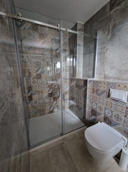 glavna terasa 2 ( 30.5m2, dvije trećine je sada natkriveno te su na otvore ugrađena vertikalna zip screen sjenila na upravljanje daljinskim, otporna na kišu i klase 6 otpornosti na vjetar + senzor za vjetar, konstrukcija ALU + poluprozirno PVC platno ).
