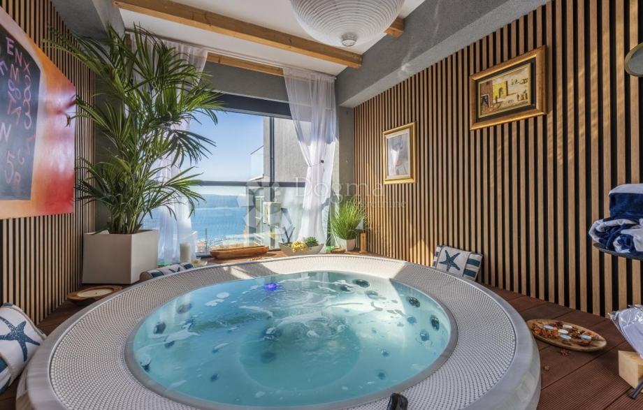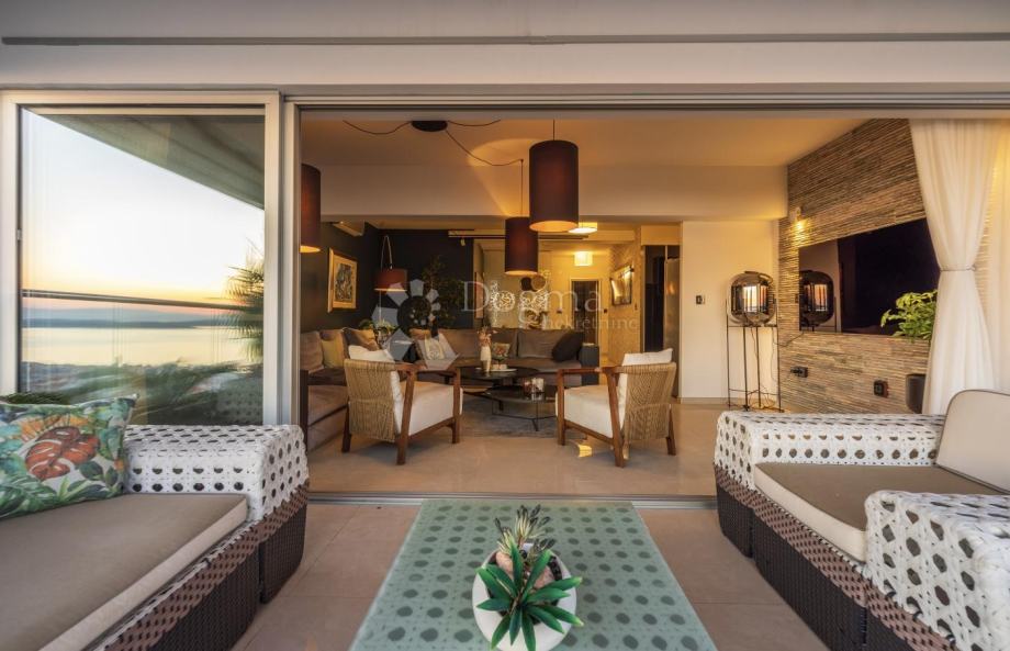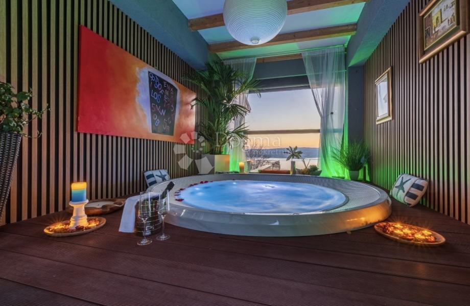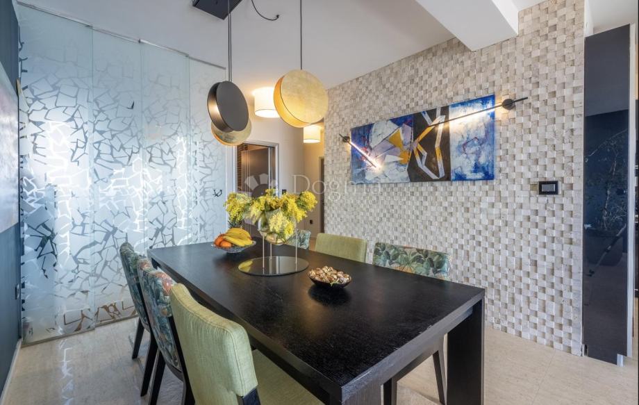 - Apartman se prodaje potpuno namješten, kao na fotografijama, i sastoji se od 3 spavaće sobe, 2 kupaonice, ostave te velikog dnevnog prostora koji obuhvaća dnevni boravak, kuhinju i blagovaonicu površine cca 90m2. Iz dnevnog prostora se izlazi na prekrasnu sunčanu terasu od cca 40m2, idealnu za uživanje u pogledu ili opuštanje. Nekretnina ima zaseban ulaz, veliku parkirnu garažu, dvorište od cca 175m2, spa centar te konobu opremljenu svim potrebnim. Postoji mogućnost pretvaranja konobe u zasebnu jedinicu ili apartman.