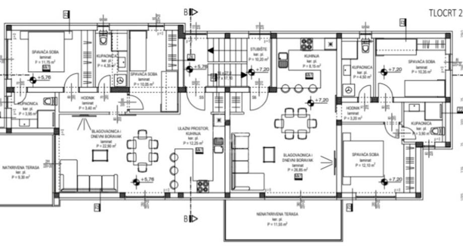 Stan, također, ima i svoju nenatkrivenu krovnu terasu (pov. 72.10 m2 x 0.25 = 18.03 m2).