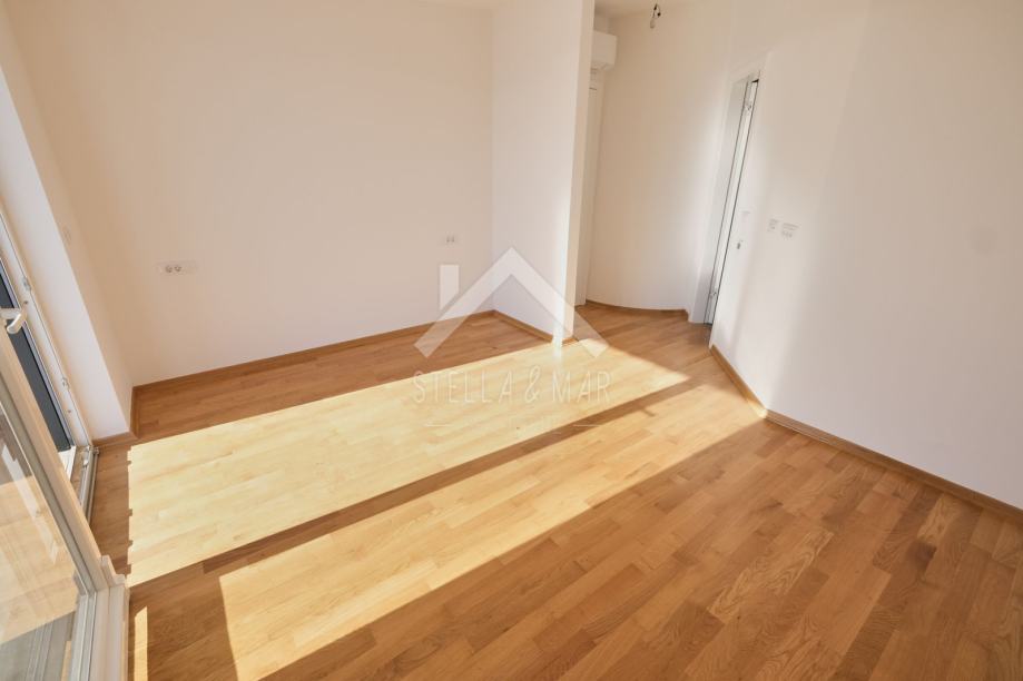 Stan je južno orijentiran, bogat sunčevom svjetlošću kroz cijeli dan. Iz istoga se pruža pogled na jedan od najljepših zalazaka sunca. Stan se proteže na 2 etaže. Na 1. etaži nalazi se kuhinja sa blagovaonicom i dnevnim boravkom, kupaonica i izlaz na terasu. Stepenište vodi na 2. etažu gdje se nalaze tri spavaće sobe, dvije kupaonice i velika terasa. Pripadaju mu dva vanjska nenatkrivena parkirna mjesta. Opremljen je klima uređajima.