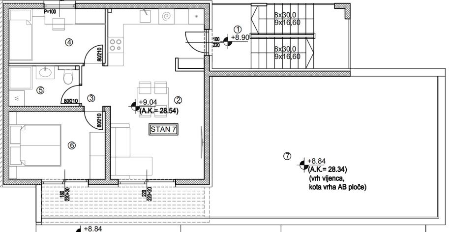 Ima 101 m2, od kojih je 46 m2 zatvoreni stambeni prostor a 54 m2 čini prostrana terasa idealna za druženje s prijateljia i obitelji.