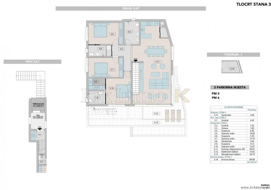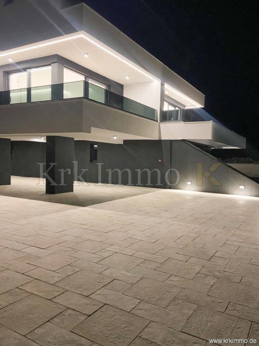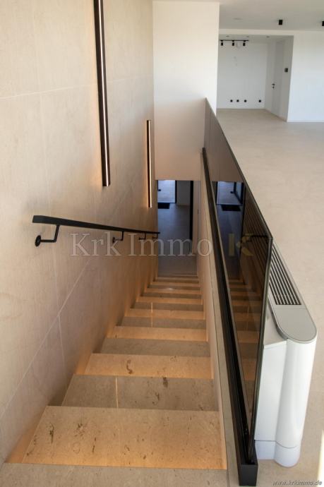 Na prodaju je luksuzni penthouse apartman smješten na odličnoj lokaciji u gradu Krku, novogradnja koja nudi vrhunski standard modernog života. Penthouse se prostire na 252 m2 i zauzima drugi kat i krov moderne zgrade. Ulaz u apartman je osiguran putem hodnika na prvom katu, dok se na drugom katu nalazi glavni stambeni prostor.