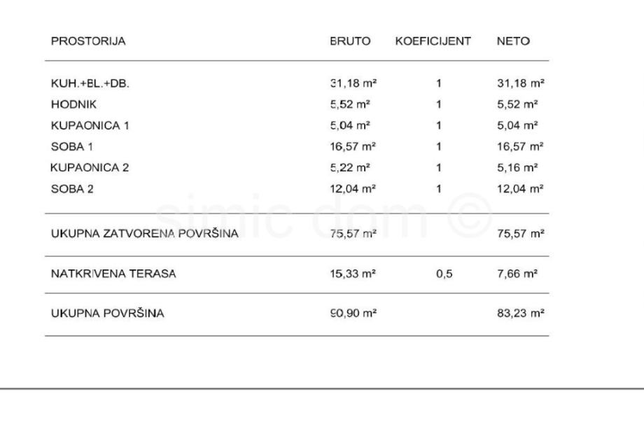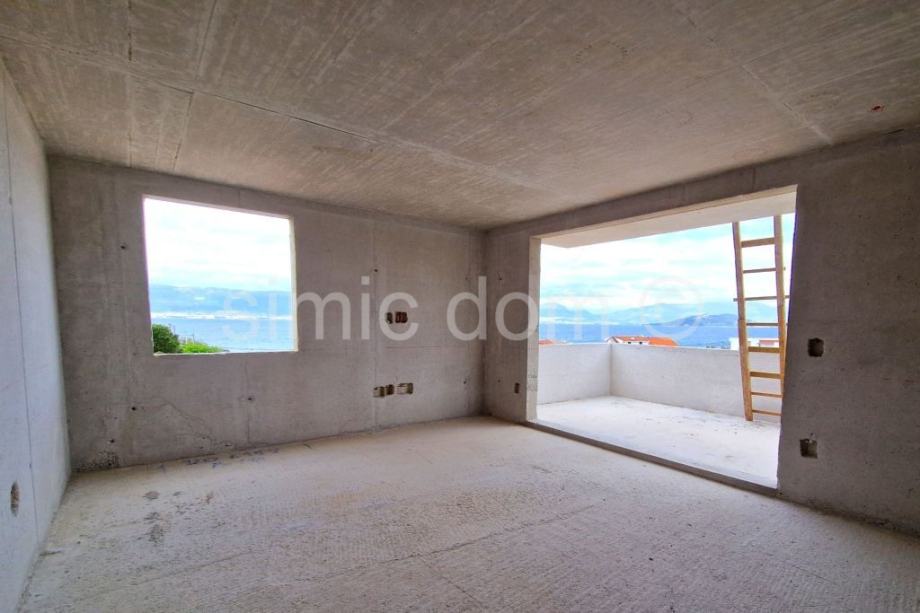 Na prodaju je odličan penthouse apartman s fenomenalnim pogledom na more, smješten na sjevernom dijelu Čiova, svega 100m od plaže, restorana i kafića. Apartman se nalazi na drugom katu manje zgrade koja će biti idealan spoj dalmatinskog ugođaja i modernog dizajna. Radi se o apartmanu ukupne neto površine 86,35m2 sa svim pripatcima. Odnosno, apartman ima 75,57m2 unutarnje površine i još terasu od 15,33m2 podne površine, a pripada mu još i vanjsko parkirno mjesto. Apartman se sastoji od prostranog predsoblja, dvije spavaće sobe, dvije kupaonice te dnevnog boravka otvorenog koncepta sa kuhinjom i blagovaonicom te natkrivene terase, a pripada mu još i vanjsko parkirno mjesto uključeno u cijenu. Apartman se prodaje po principu ključ u ruke, sa opremljenom kupaonicom, podnim grijanjem u kupaonicama, unutarnjom stolarijom, ugrađenim klima uređajima, PVC vanjskom stolarijom, troslojnom kliznom stijenom, a do ljeta 2025. kupac ima mogućnost biranja pločica i materijala, kao i mogućnost dodatnog postavljanja podnog grijanja u ostatku apartmana u dogovoru sa investitorom. Očekivani završetak radova je proljeće 2026. godine. Budući da se zgrada nalazi u neposrednoj blizini svih sadržaja, a opet u vrlo mirnoj ulici, ova odlična nekretnina pružiti će kupcima idealni spoj u šarmantnom malom apartmanu u novogradnji.