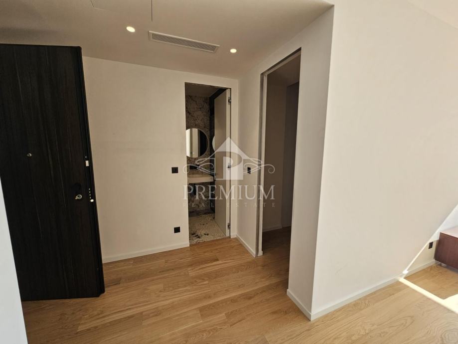 Ovaj izniman penthouse opremljen je najkvalitetnijim završnim obradama, najnaprednijom opremom i izborom materijala kao što su troslojni hrastov parket, Schuco aluminijska stolarija s troslojnim staklom i električne rolete. Dodatno ističemo vanjsku stolariju s velikim kliznim stijenama, podno grijanje na toplinsku pumpu i ventiliranu vanjsku fasadu.