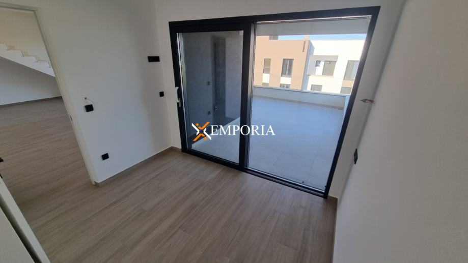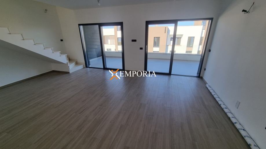 Ovo je stan na drugom katu. Raspored prostorija čine hodnik, 2 spavaće sobe, spavaća soba s kupaonicom, kupaonica, kuhinja s blagovaonicom i dnevnim boravkom te dijelom natkrivena terasa. Iz stana se dolazi direktno na krovnu terasu koja pripada ovom stanu. Površina krovne terase iznosi 102,32 m2. Na terasi je bazen od 15,30 m2. Neto korisna površina opisanih prostorija s terasama iznosi 130,05 m2. Dodatno apartmanu pripadaju dva parkirališna mjesta.