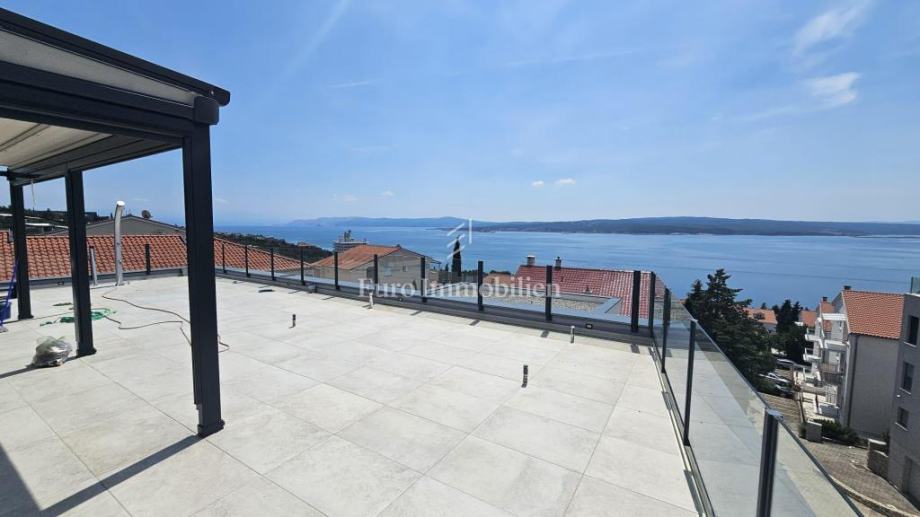 Crikvenica nekretnine, Dramalj - prodaje se moderan penthouse smješten u stambenoj zgradi u kojoj su samo 3 stana, a nalazi se na kraju slijepe ulice, što garantira mir i odmor u ljetnim mjesecima. Udaljenost do mora je svega 300 m.