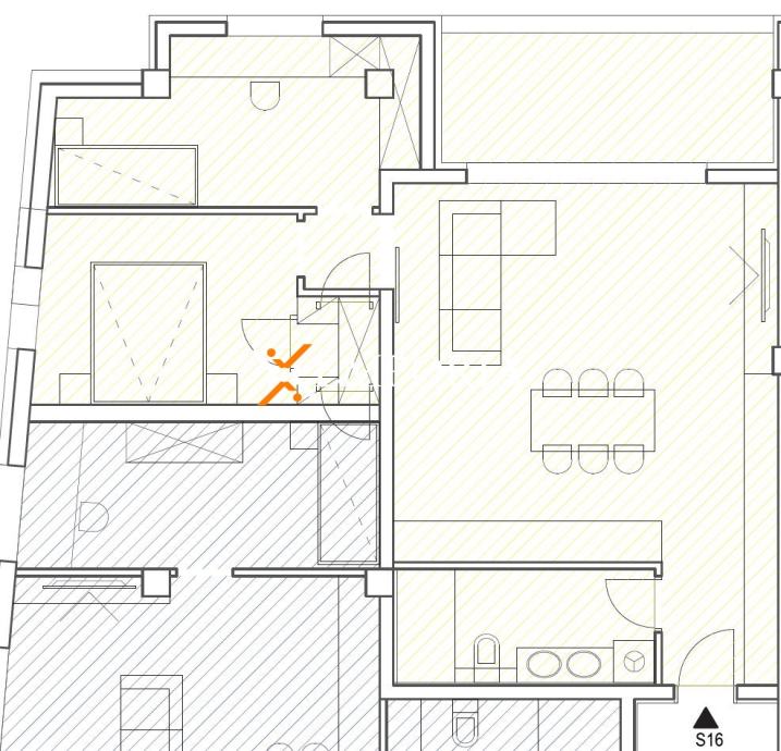 Ovo je penthouse stan na trećem katu s oznakom S16. Tlocrtno se sastoji od hodnika, 2 spavaće sobe, kupaonice, kuhinje s blagovaonicom i dnevnim boravkom te loggie. Površina opisanog je 72,28 m2. Uz stan pripada i krovna terasa od 101 m2, natkriveno parkirno mjesto u garaži, vanjsko parkirno mjesto i spremište u podrumu.