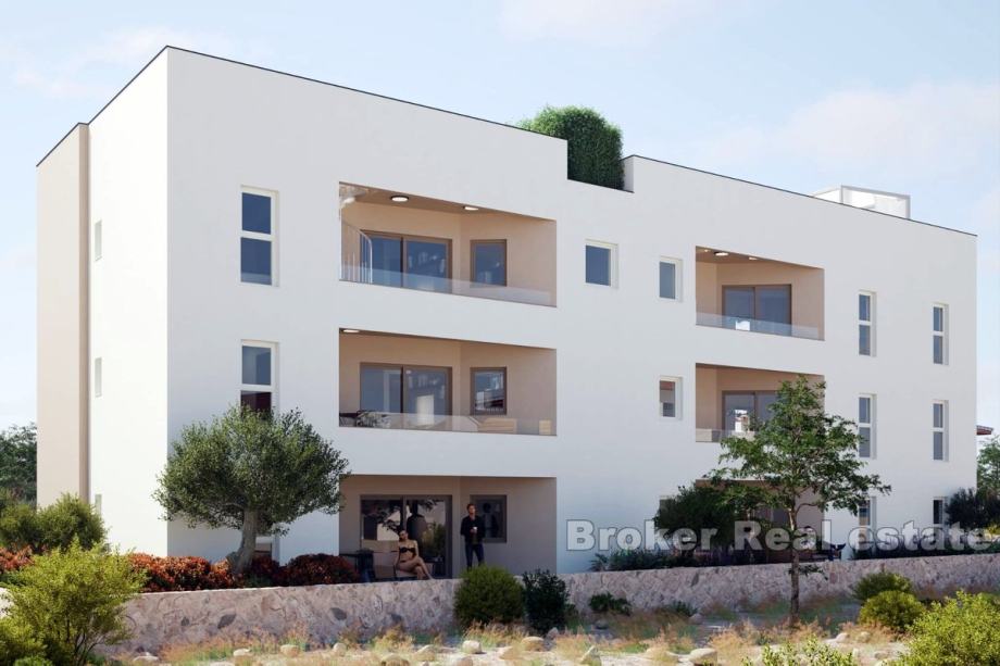 Iz svih prostorija u stanu nudi se otvoreni pogled na cijeli zadarski arhipelag. Svaki stan ima uključena dva parkirna mjesta u cijenu.