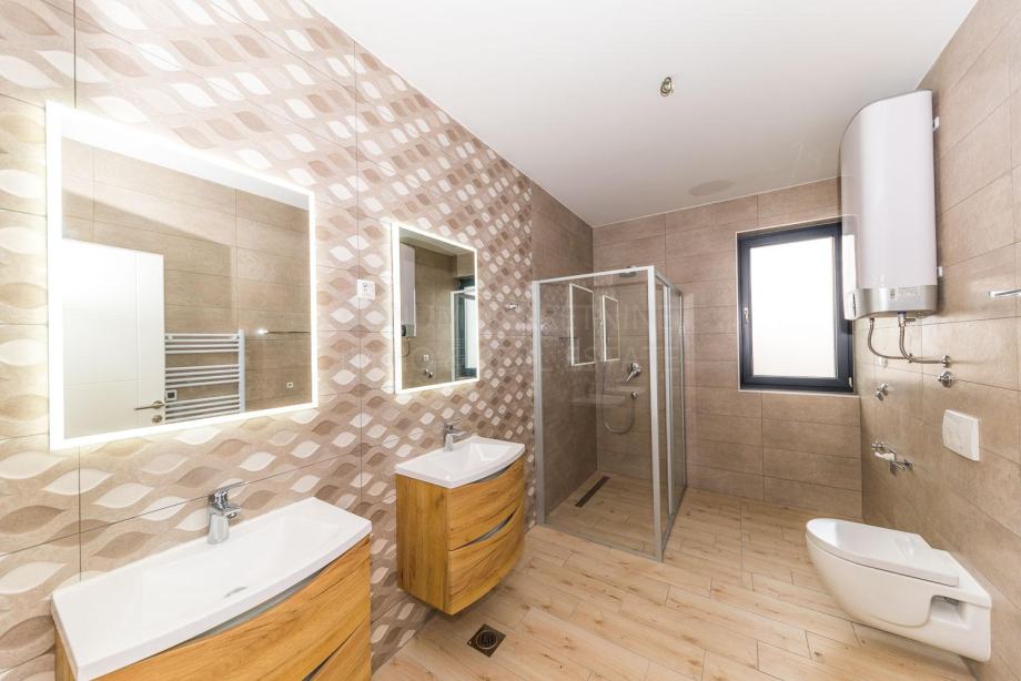 Vodice, prodaje se odličan penthouse sa krovnom terasom. Penthouse se nalazi u manjoj modernoj zgradi sa tri stana. Nalazi se na drugom katu u novoj zgradi. Sastoji se od tri konforne spavaće sobe od kojih jedna ima i vlastitu kupaonu, hodnika, kuhinje sa blagovaonom i dnevnim boravkom u jednoj cjelini, kupaone te djelomično natkrivene terase od 21.64 m2. Penthousu pripada i prostrana krovna terasa od čak 104.80 m2. Sa krovne terase se pruža prekrasan pogled na Vodice te okolni arhipelag. Penthousu pripadaju i dva parkirna mjesta. Sa kupnjom ove nekretnine jednostavno ne možete pogriješiti, daje sav potreban konfor koji kupac treba te se nalazi u Vodicama, malom gradu sa svim sadržajima potrebnim za kvalitetan život.