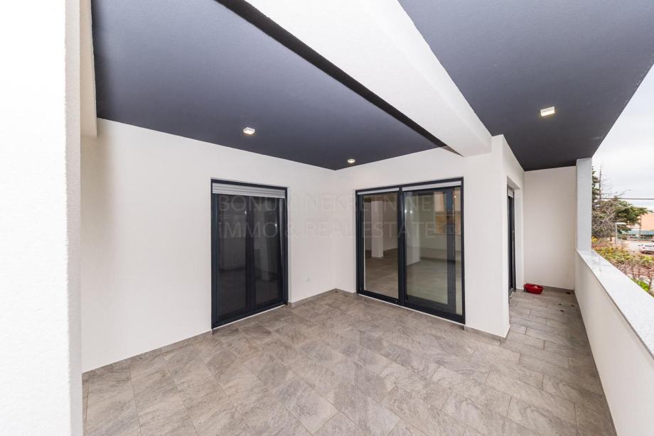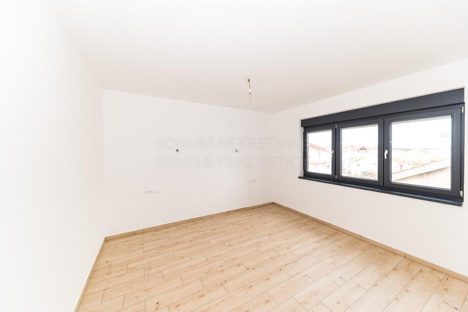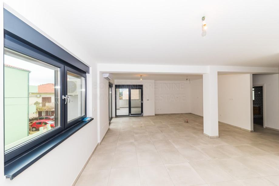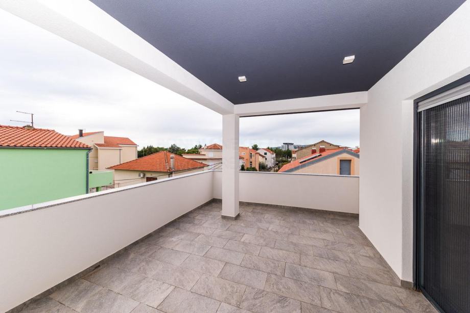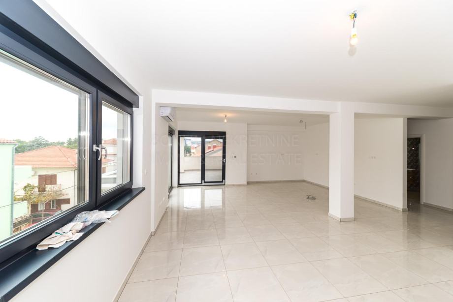 Vodice, prodaje se odličan penthouse sa krovnom terasom. Penthouse se nalazi u manjoj modernoj zgradi sa tri stana. Nalazi se na drugom katu u novoj zgradi. Sastoji se od tri konforne spavaće sobe od kojih jedna ima i vlastitu kupaonu, hodnika, kuhinje sa blagovaonom i dnevnim boravkom u jednoj cjelini, kupaone te djelomično natkrivene terase od 21.64 m2. Penthousu pripada i prostrana krovna terasa od čak 104.80 m2. Sa krovne terase se pruža prekrasan pogled na Vodice te okolni arhipelag. Penthousu pripadaju i dva parkirna mjesta. Sa kupnjom ove nekretnine jednostavno ne možete pogriješiti, daje sav potreban konfor koji kupac treba te se nalazi u Vodicama, malom gradu sa svim sadržajima potrebnim za kvalitetan život.
