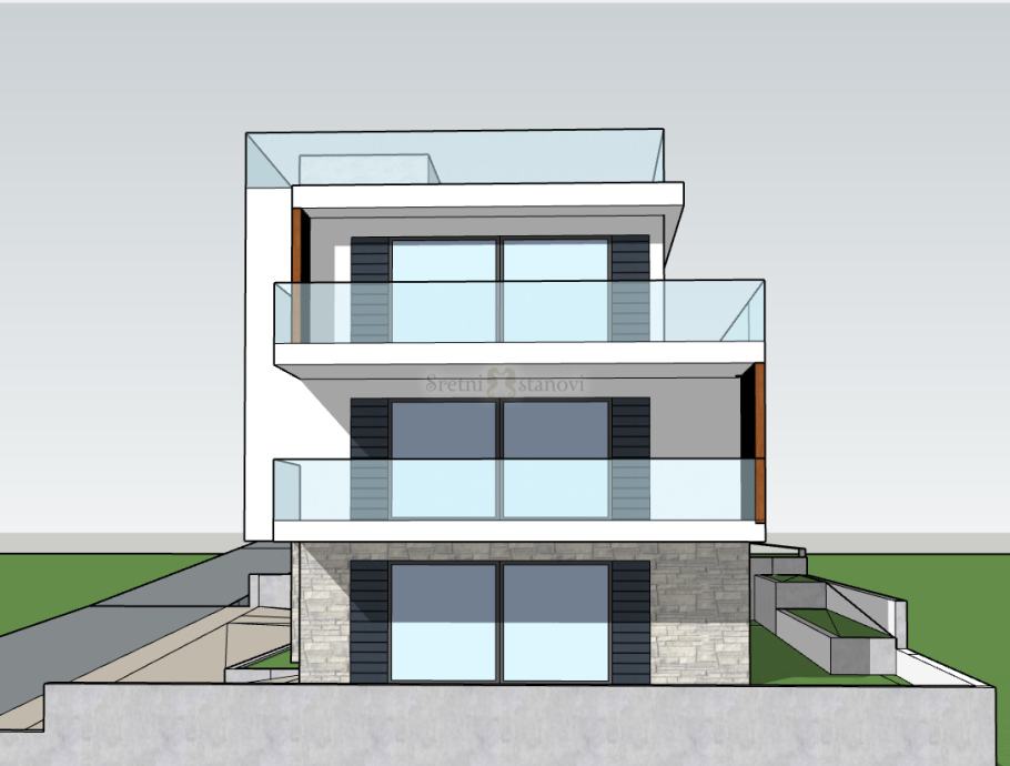 Prodaje se luksuzan penthouse stan u sklopu kvalitetne i moderne novogradnje s dizalom u centru Vodica, na samo 200 m do mora i gradske šetnjice. Na ovoj izuzetnoj lokaciji gradi se zgrada prizemlje+2 kata, a na svakoj se etaži nalazi po jedan stan. Svakom stanu pripadaju 2 vanjska parkirna mjesta u okućnici zgrade. Stan na vrhu (2. kat) ističe se zbog svojeg praktičnog tlocrta i prekrasne privatne krovne terase s jacuzzi kadom, ljetnom kuhinjom, vanjskim tušem sunčalištem, umjetnom travom i pogledom na more.