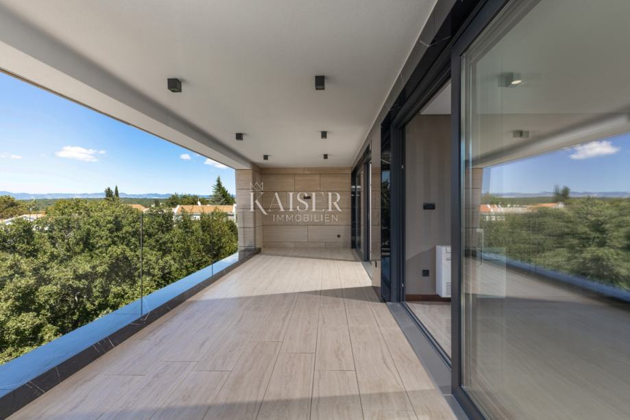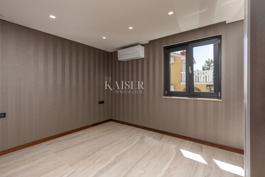 Kaiser Immobilien nudi penthouse na drugome katu u luksuznoj villi 80 metara od mora. Villa je sagrađena 2022. godine te su pri gradnji korišteni najkvalitetniji materijali kao i inovativan način gradnje. U 126 m2 smještene su 3 spavaće sobe, svaka s pripadajućom kupaonicom, gostinjski toalet te veliki dnevni boravak s kuhinjom. Stanu pripada i velika natkrivena terasa veličine 26 m2 s koje se pruža otvoreni pogled na more. Za potpuni užitak tu je i velika privatna okućnica površine 50 m2 gdje se nalaze bazen i vrt.