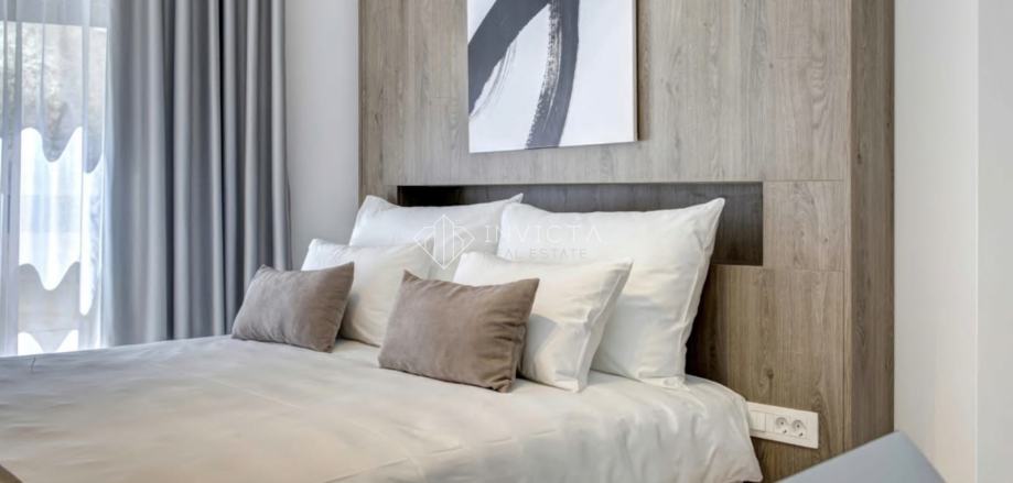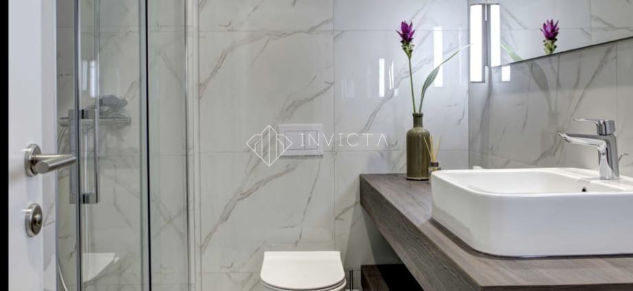Stan se sastoji od dvije spavaće sobe, dnevnog boravka, balkona površine 10,70 m2, lođe na krovu površine 10 m2 i krovne terase površine 75 m2. Podno grijanje i klima uređaj osiguravaju ugodnu atmosferu tijekom cijele godine.