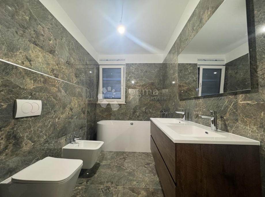 Stan je opremljen klima uređajima u svakoj spavaćoj sobi, kao i u dnevnom boravku. Tu su i električni podizači roleta te moderno touch ogledalo u kupaonici, što dodatno naglašava suvremeni stil i kvalitetu izvedbe.
