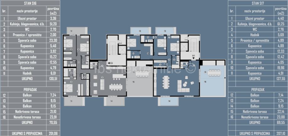 Stan ima ukupno 153,42 m2, a sastoji se od: