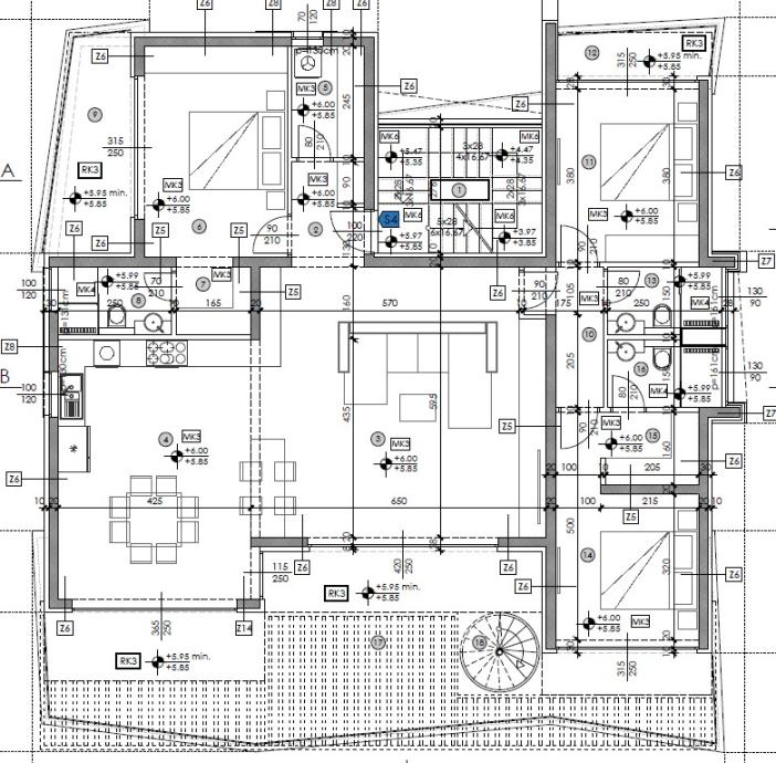 Penthouse oznake S4 nalazi se na 2. katu i ima ukupnu korisnu površinu od 185,39 m2. Sastoji se od hodnika, prostranog dnevnog boravka s kuhinjom i blagovaonicom te izlazom na balkon. Tri spavaće sobe, svaka sa svojom kupaonicom i izlazom na balkon, osiguravaju maksimalnu privatnost i udobnost.