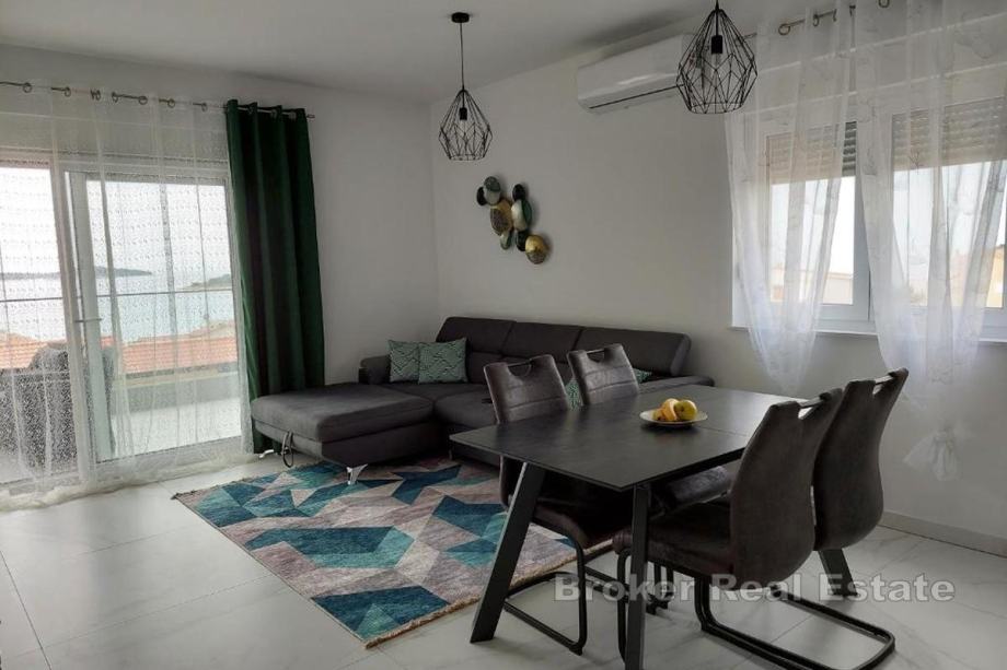 Ovaj sunčani apartman stambene površine 50 m² nalazi se na zadnjem katu manje stambene zgrade te se odlikuje mirnim okruženjem, blizinom plaže (udaljenost svega 150 m) i fantastičnim otvorenim pogledom na more koji oduzima dah.
