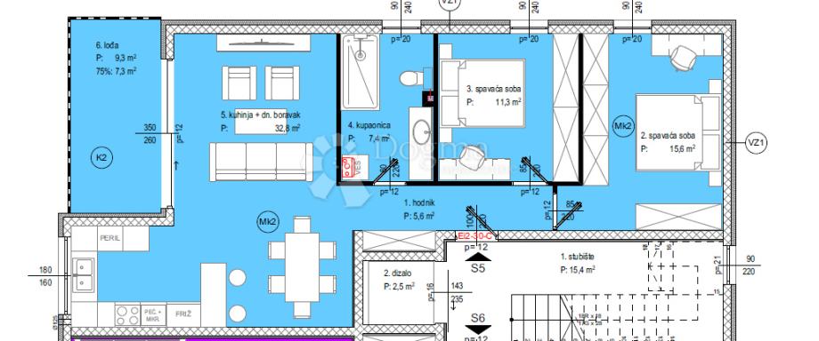 Površina stana je 106,64 m2 korisne vrijednosti.