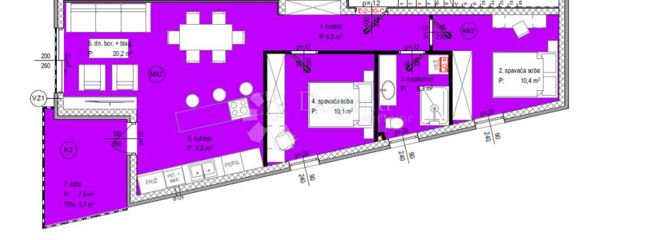 U vrhunsko novoizgrađenoj zgradi sa 6 stanova u naselju Crvene kuće prodaje se Penthouse oznake S6 smješten na drugom katu sa vlastitim krovnom terasom.