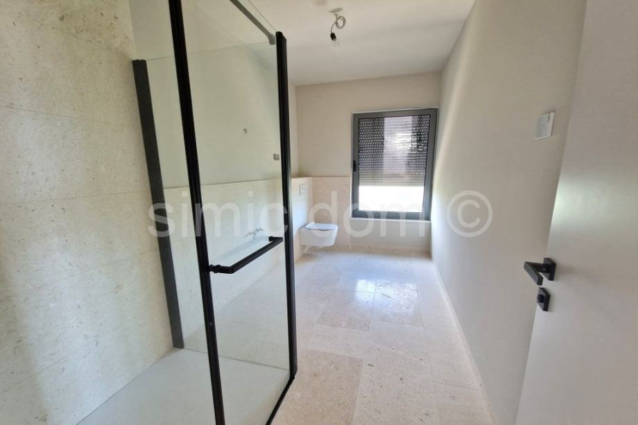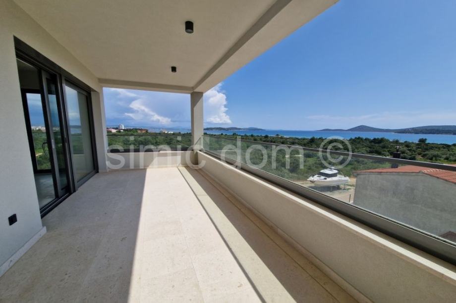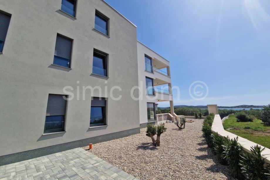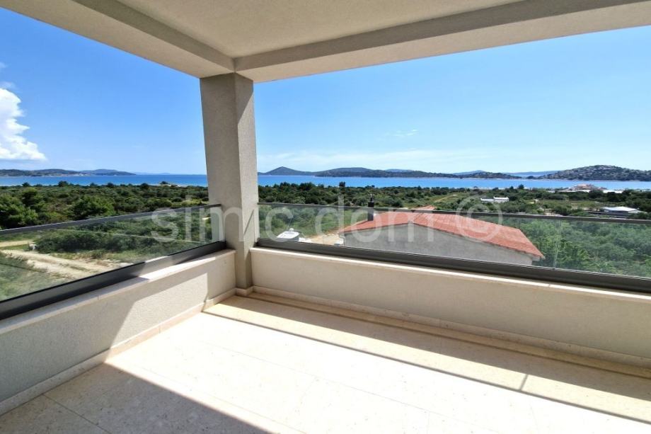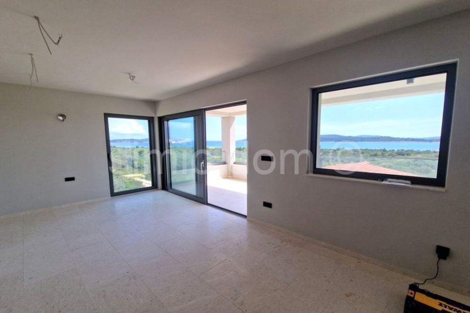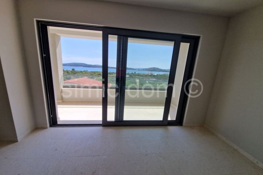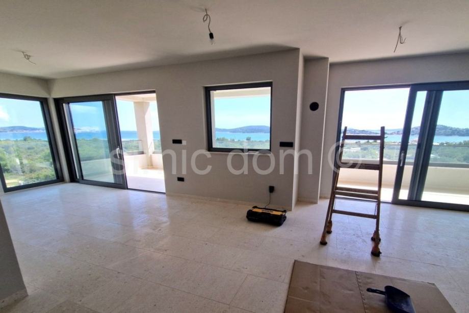 Na prodaju je predivan penthouse apartman u Tribunju, smješten na samo 380 metara od plaže. Apartman je smješten na drugom katu i dio je moderne novogradnje koja ima ukupno 6 stanova. Jugoistočne je orijentacije i ukupna mu je površina 107,50 m2. Sastoji se od ulaznog prostora, hodnika, 2 spavaće sobe, 2 kupaonice, vešeraja, kuhinje otvorenog koncepta s blagovaonicom i dnevnim boravkom iz kojeg se izlazi na natkrivenu terasu s predivnim pogledom na more, Tribunj i Vodice. Ova novogradnja će biti opremljena prema najnovijim standardima gradnje s visokokvalitetnim materijalima, uključujući električne rolete, ALU prozore, podove od prirodnog kamena, klimatizaciju spavaćih i dnevnih soba, modernu kupaonsku opremu te podno grijanje. Završetak radova predviđen je za proljeće/ljeto 2025. godine. Dva parkirna mjesta uključena su u prodajnu cijenu.
