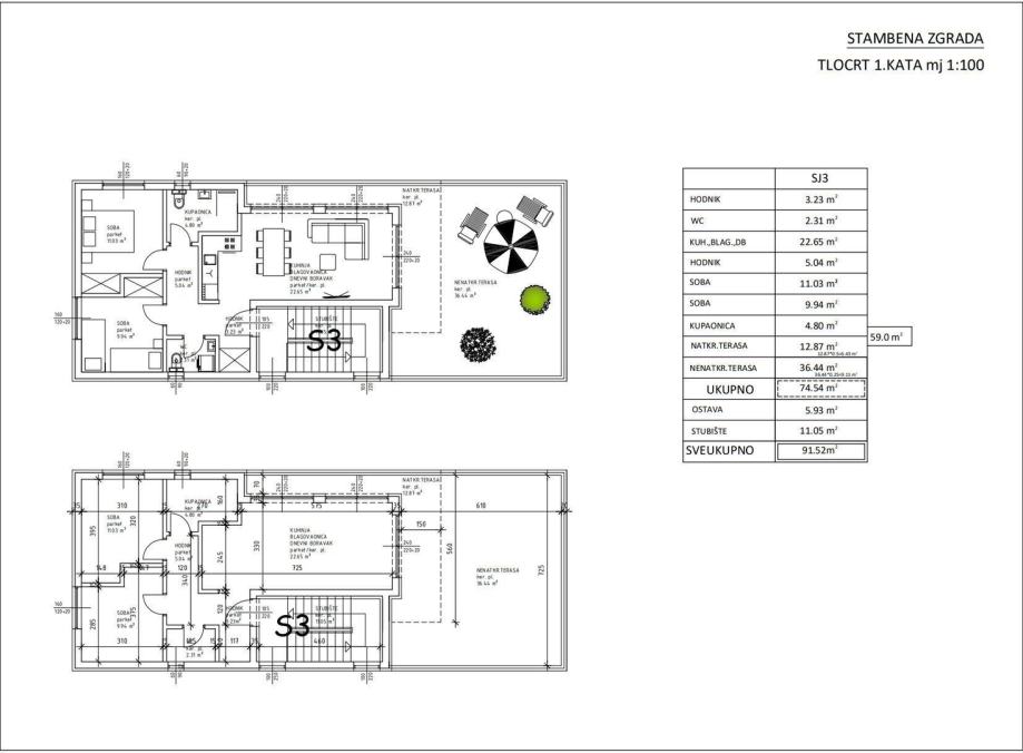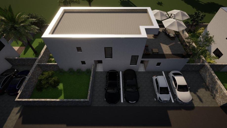 Veliki dnevni boravak, kuhinja i blagovaonica pružaju idealan prostor za obiteljska okupljanja i druženje, a natkrivenu terasa pruža mogućnost uživanja na otvorenom i opuštanja na svježem zraku.