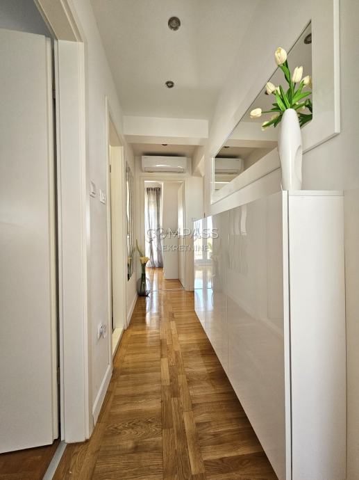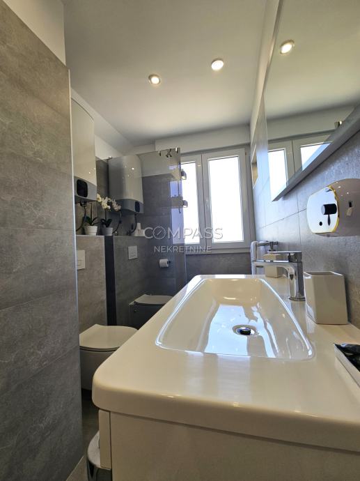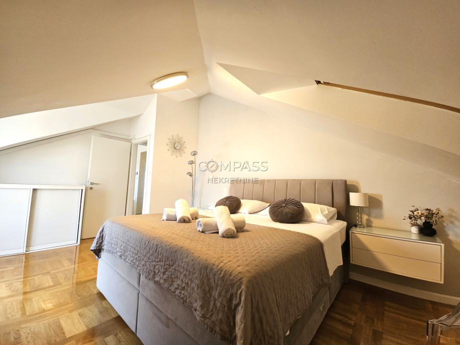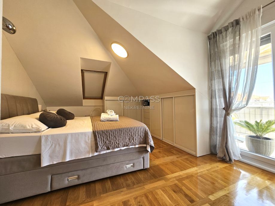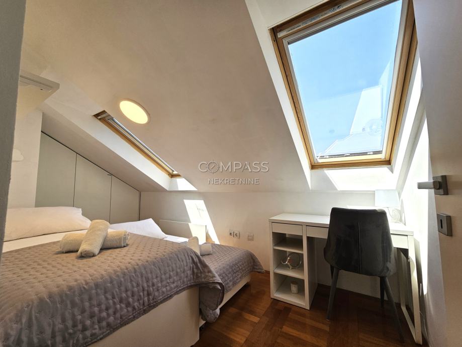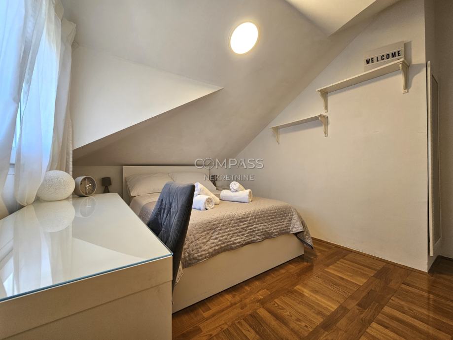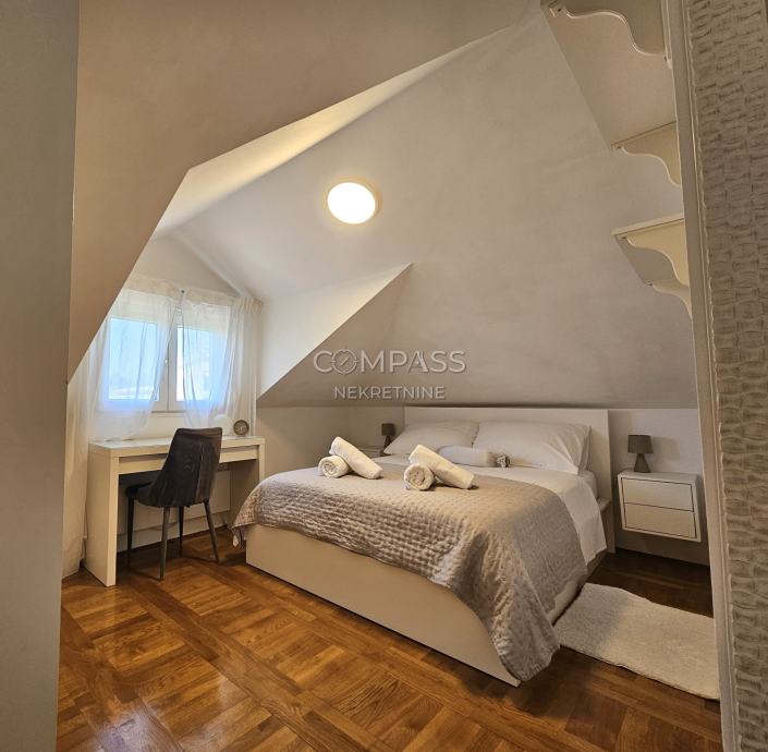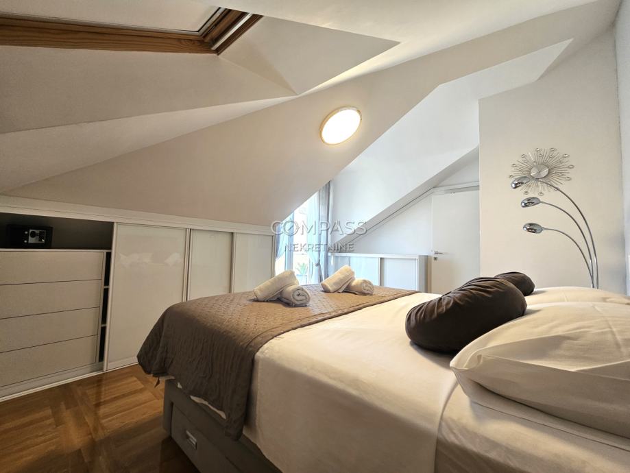 We are mediating the rental of a beautiful penthouse in a residential building in Pazdigrad. The apartment consists of an entrance hall, three bedrooms, two bathrooms, and a spacious open-plan living area with kitchen, dining room, and living room, leading to a beautiful balcony with sea view, also accessible from the master bedroom. The apartment is fully equipped and furnished with carefully selected furniture and quality appliances. It includes two garage parking spaces and three storage rooms. Ideal for families and those working from home, thanks to its comfortable and functional layout. Located close to all essential amenities for everyday life. For a viewing appointment, contact Leana at +385 91 638 14 92 or by email at info@compass.hr