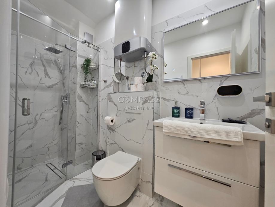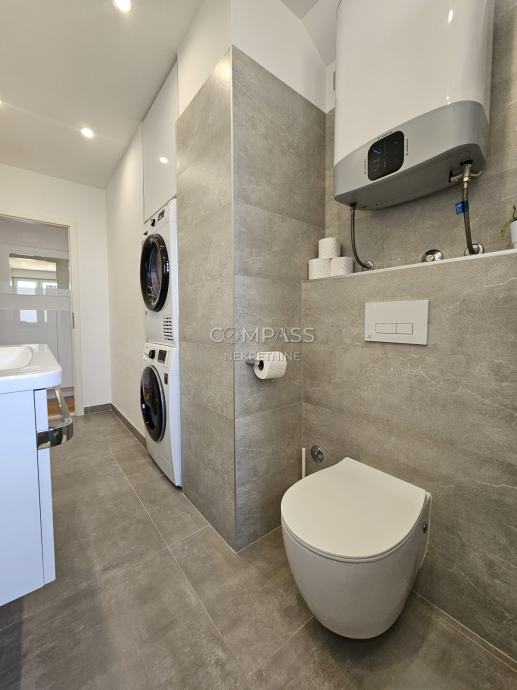 Vi formidler utleie av en nydelig toppleilighet i en boligbygning i Pazdigrad. Leiligheten består av entré, tre soverom, to bad og en romslig åpen stue med kjøkken, spisestue og oppholdsrom, med utgang til en vakker balkong med sjøutsikt, som også er tilgjengelig fra hovedsoverommet. Leiligheten er fullt utstyrt og møblert med nøye utvalgte møbler og kvalitetsapparater. Den inkluderer to garasjeparkeringsplasser og tre boder. Perfekt for familier eller de som jobber hjemmefra, takket være en funksjonell og komfortabel planløsning. Ligger nær alle nødvendige fasiliteter for hverdagen. For å avtale visning, kontakt Leana på +385 91 638 14 92 eller på e-post info@compass.hr