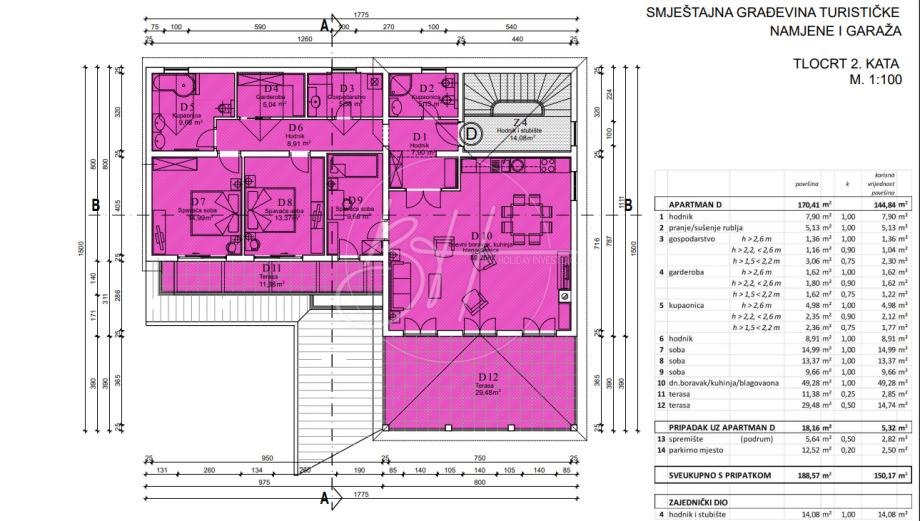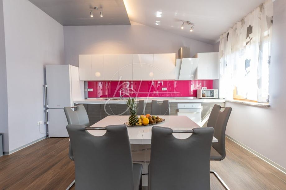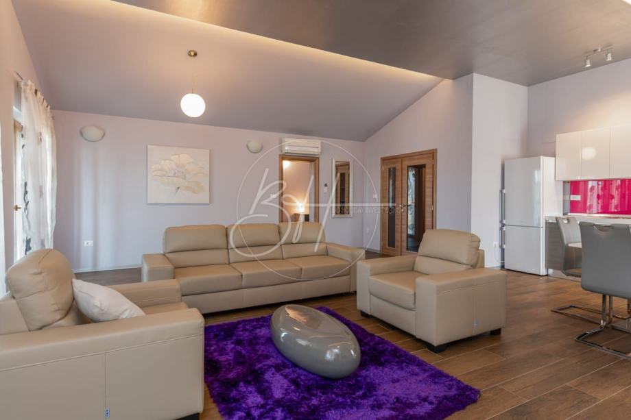 Prodaje se prostrani i elegantni penthouse površine 150 m², smješten na drugom katu manje stambene zgrade s ukupno četiri stambene jedinice. Zahvaljujući velikim staklenim površinama, stan obiluje prirodnim svjetlom te pruža osjećaj prozračnosti i udobnosti.