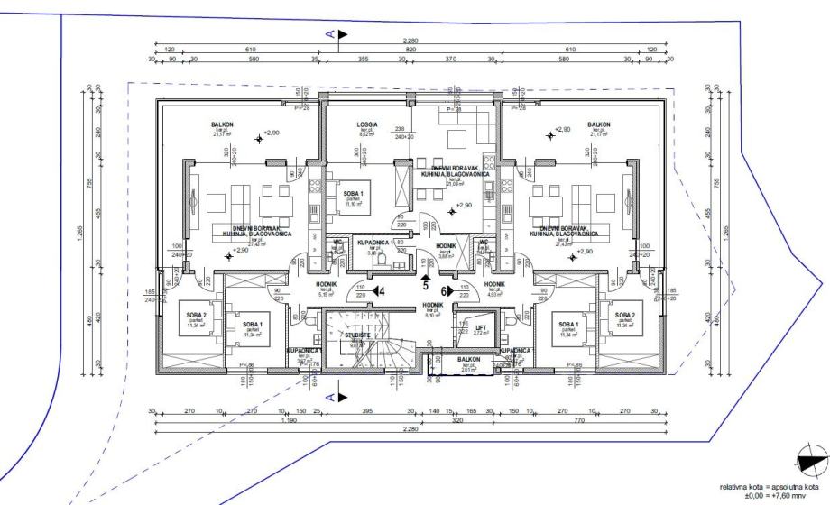 A7– 4-sobni dvoetažni PENTHOUSE veličine 198.52m2 se nalazi na 2.katu novogradnje i sastoji se od: